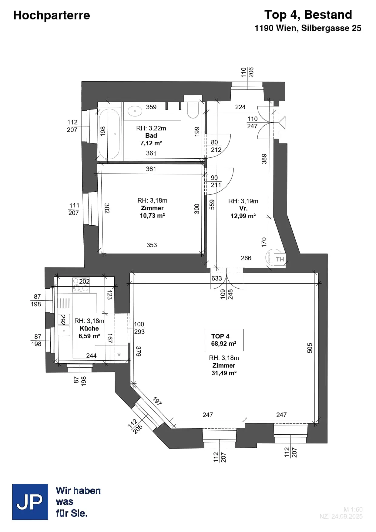 Diese Wohnung befindet sich im Hochparterre eines klassischen Wiener Altbaus in der Silbergasse im 19. Bezirk. Sie wird im unsanierten Zustand verkauft und bietet damit eine sehr gute Grundlage für eine individuelle Sanierung nach eigenen Vorstellungen. Der Grundriss überzeugt durch eine klare, gut nutzbare Aufteilung: Ein großzügiger Vorraum verbindet sämtliche Räume miteinander. Das große Zimmer bietet viel Platz und wirkt durch die hohe Raumhöhe besonders großzügig. Ein weiteres Zimmer eignet sich ideal als Schlaf-, Arbeits- oder Gästezimmer. Die Küche ist separat angelegt, das Badezimmer verfügt über ein Fenster und eine Badewanne. Typisch für Wiener Altbauten verleihen die hohen Räume der Wohnung ein besonderes Wohnambiente. Die Immobilie bietet eine hervorragende Gelegenheit, den Bestand nach eigenen Wünschen zu modernisieren und ein stilvolles Zuhause zu schaffen. Die Lage in der Silbergasse besticht durch beste Infrastruktur: Einkaufsmöglichkeiten, öffentliche Verkehrsmittel, charmante Lokale sowie Grünanlagen und Weinberge sind bequem erreichbar. Diese Wohnung eignet sich ideal für Menschen mit Sinn für Altbaucharme und Gestaltungsfreude — ein echtes Sanierungsobjekt mit Potenzial. Ansprechparter: Frau Doris Kurzweil || +43 699 17 55 66 16 || dk@jpi.at Wir weisen darauf hin, dass wir mit dem Abgeber in ständiger Geschäftsbeziehung stehen und schon aus diesem Grund ein wirtschaftliches Naheverhältnis vorliegt.