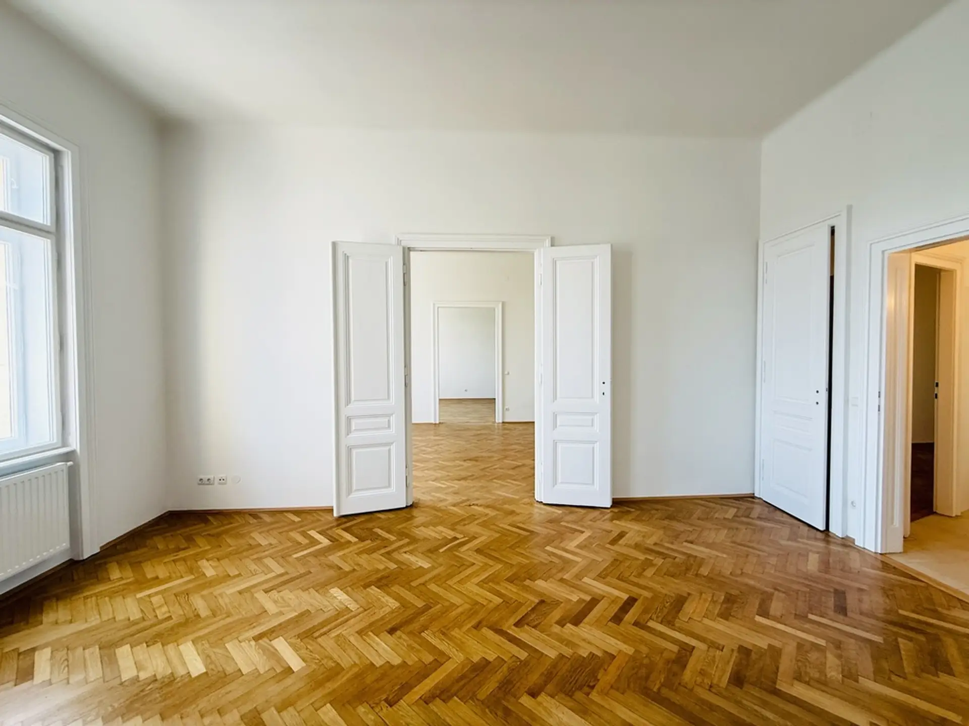 umfassend und mit viel Liebe zum Detail sanierte Wohnung befindet sich im 3. Stock (ohne Lift) eines sehr gepflegten Jugendstil-Zinshauses, ist sehr hell und bietet durch die sehr großen Wohnräume exklusives Ambiente und Altbauflair der Superlative.