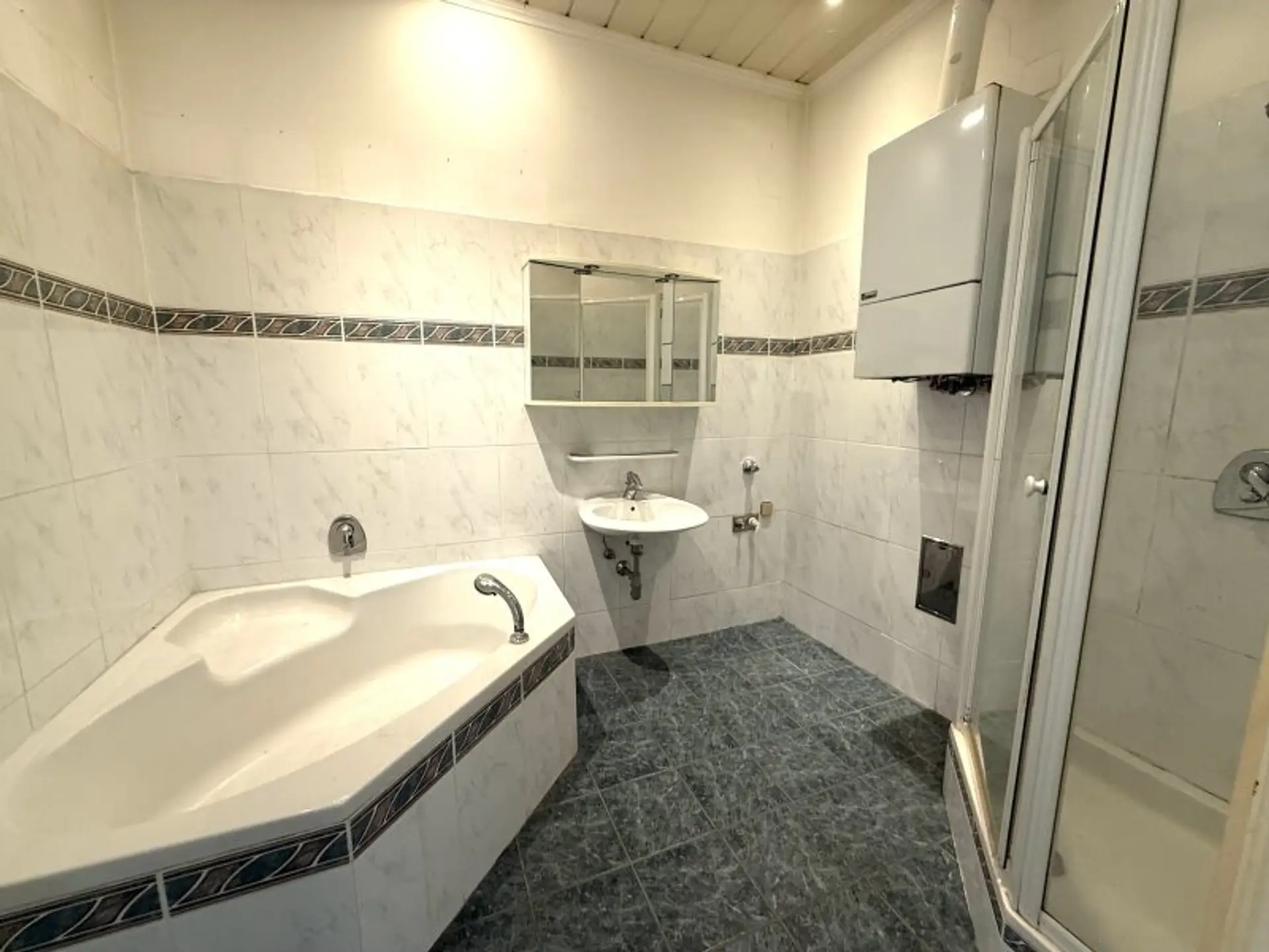 - Badezimmer mit Wanne, Dusche, Doppelwaschbecken
