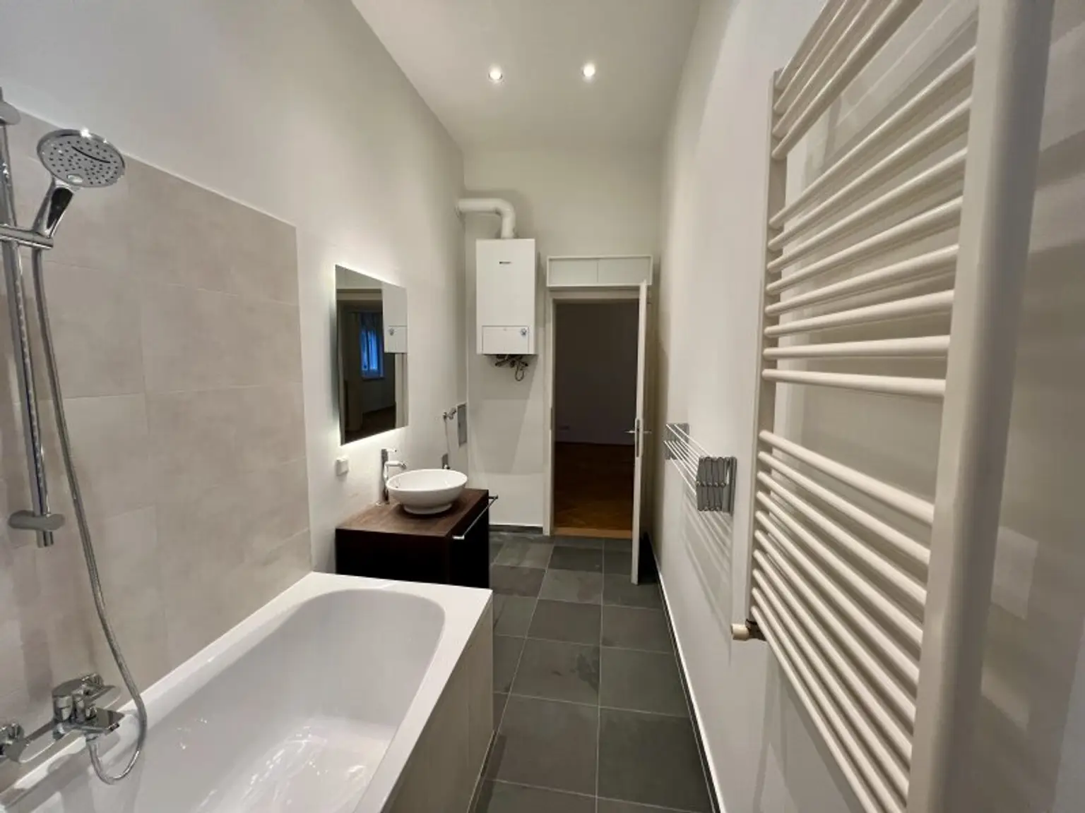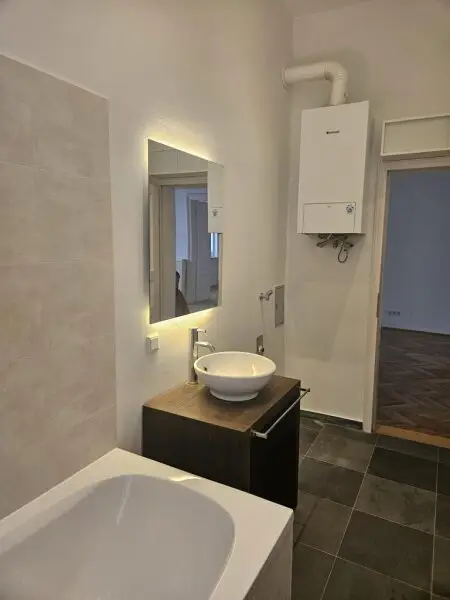 Ein weiteres Highlight der Wohnung ist das moderne Badezimmer. Es verfügt über eine Badewanne, in der Sie nach einem langen Tag entspannen können, sowie ein Fenster, das für ausreichend Tageslicht sorgt. Die Etagenheizung, die mit Gas betrieben wird, sorgt für wohlige Wärme in den kälteren Monaten.