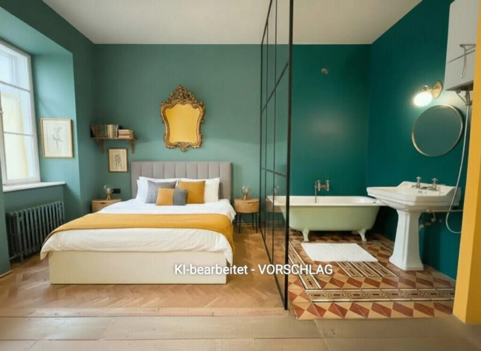 Bei Bedarf kann mit geringem Aufwand wieder eine Trennwand errichtet werden, sodass ein separater Schlafbereich entsteht.