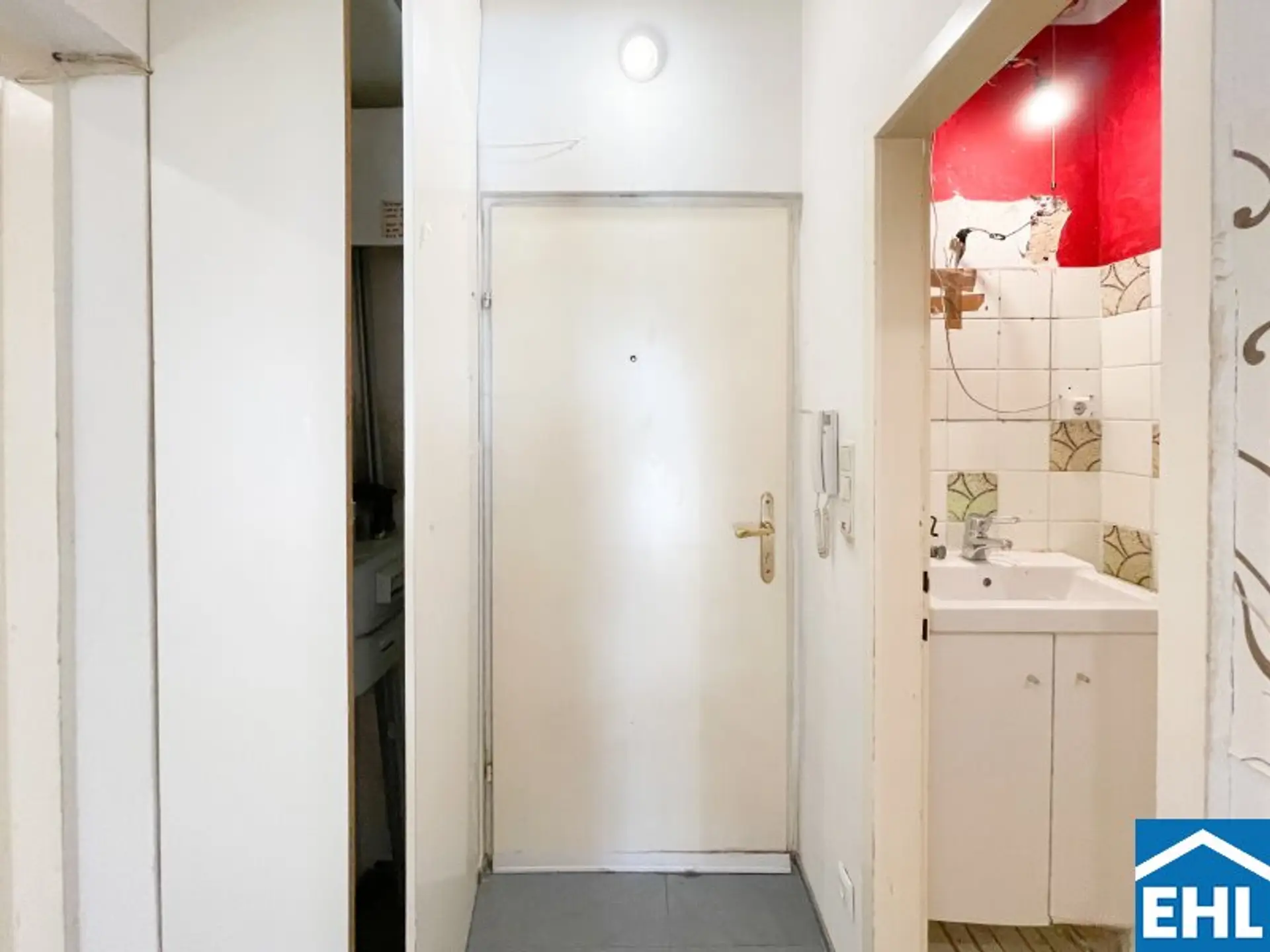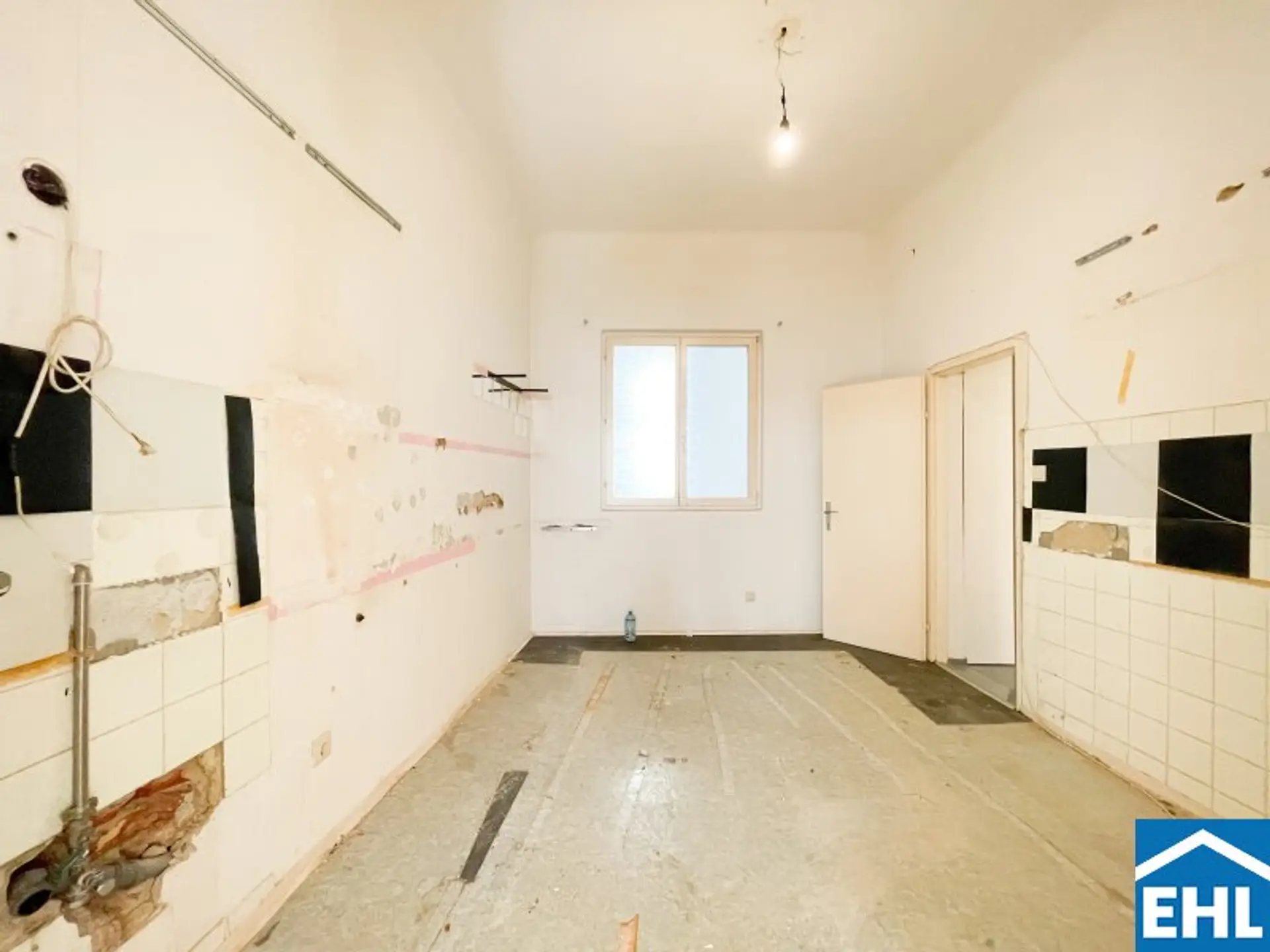 Die Wohnung selbst bietet eine kompakte Raumaufteilung mit Vorraum, Küche, Wohnzimmer und 1,5 Schlafzimmer sowie Badezimmer. Aufgrund des Sanierungsbedarfs können Käufer ihre eigenen Vorstellungen von Raumgestaltung und Ausstattung einbringen und so ein individuelles Zuhause schaffen.