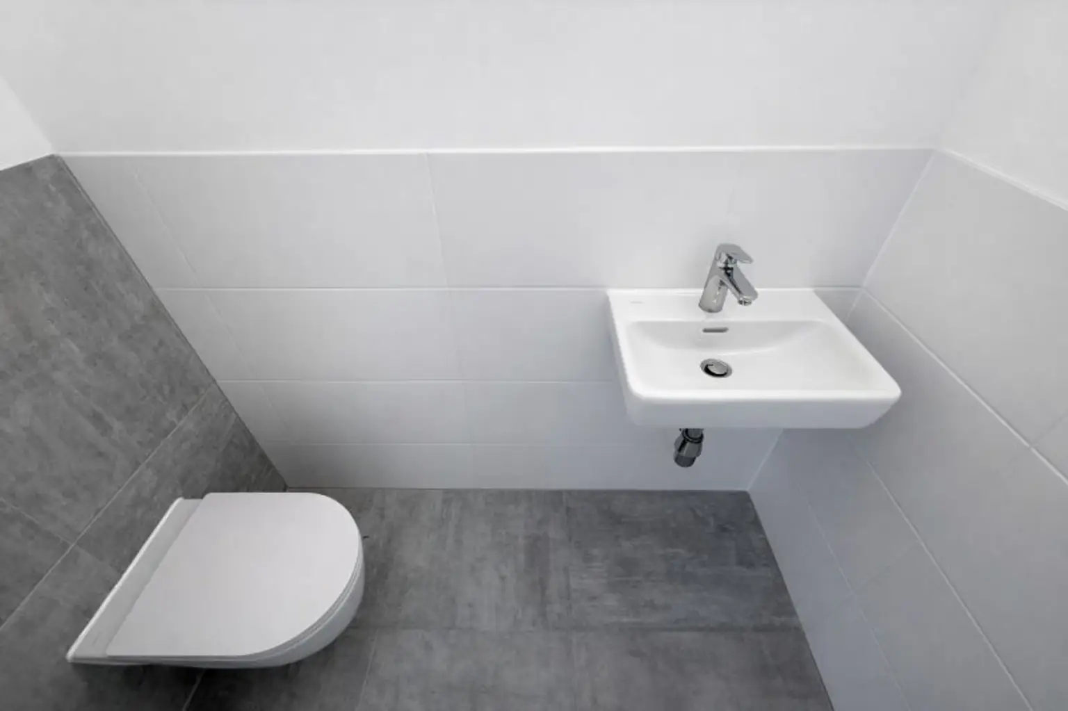 * separate Toilette mit einem Handwaschbecken