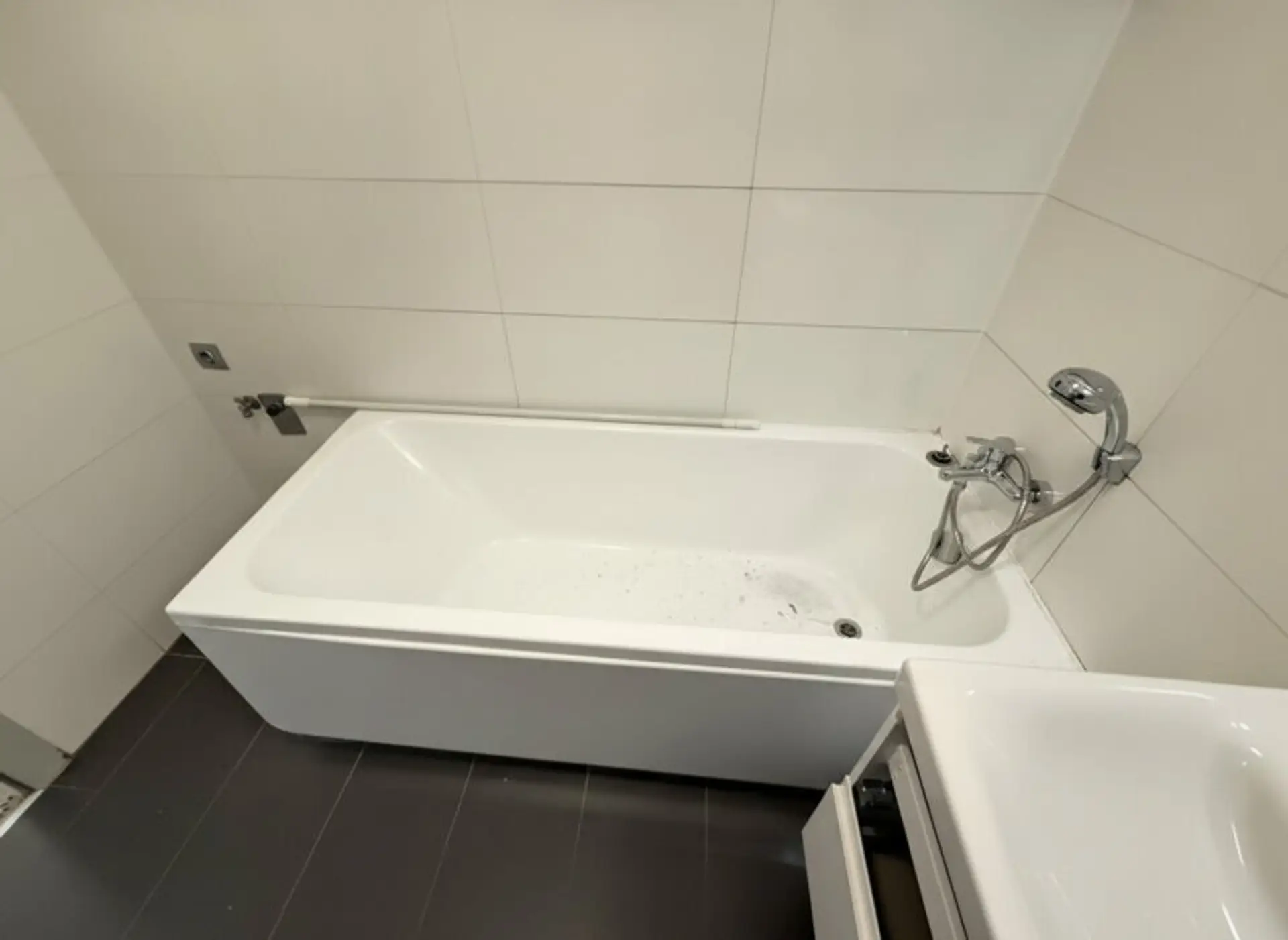 Badezimmer mit Badewanne und Waschmaschinenanschluss