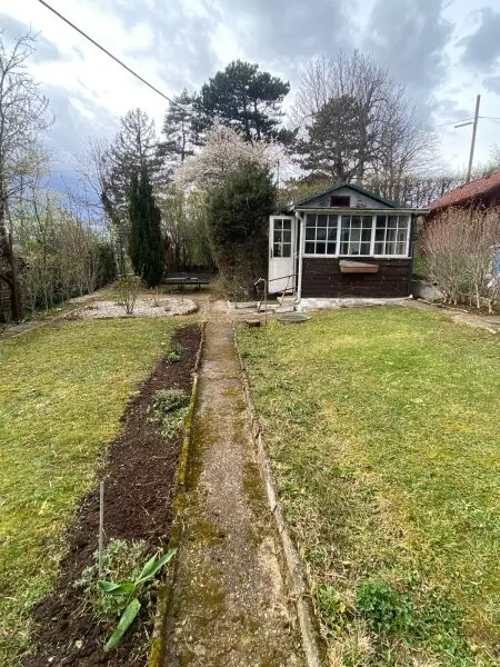 Dieses wunderbare Kleingartengrundstück befindet sich am Rande der Kleingartenanlage und grenzt direkt an die weitläufigen Parkanlagen des "Wasserschlosses" der Gemeinde Wien,