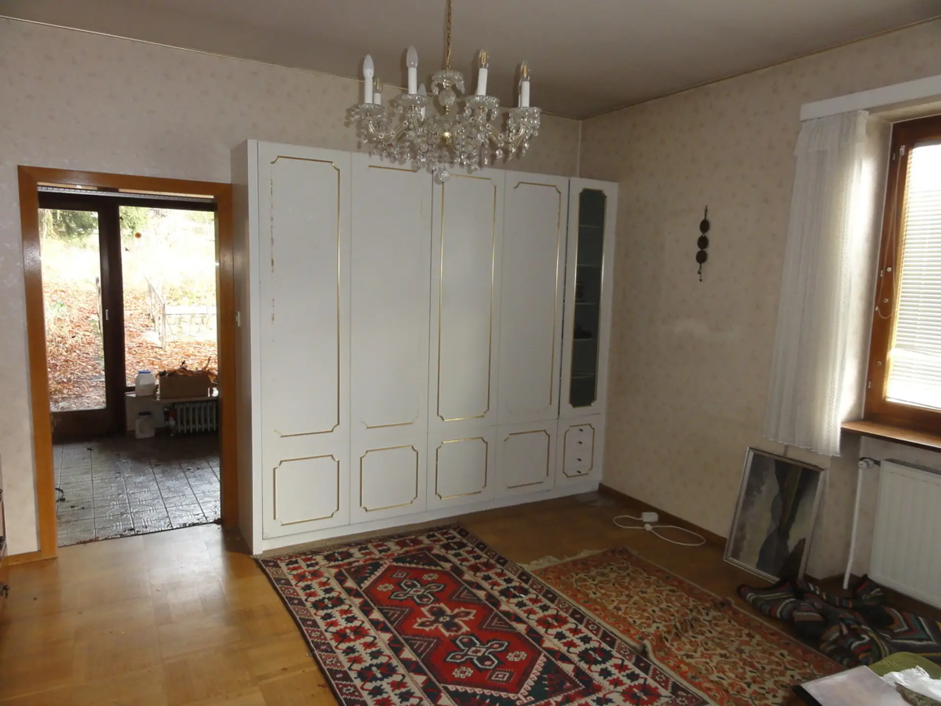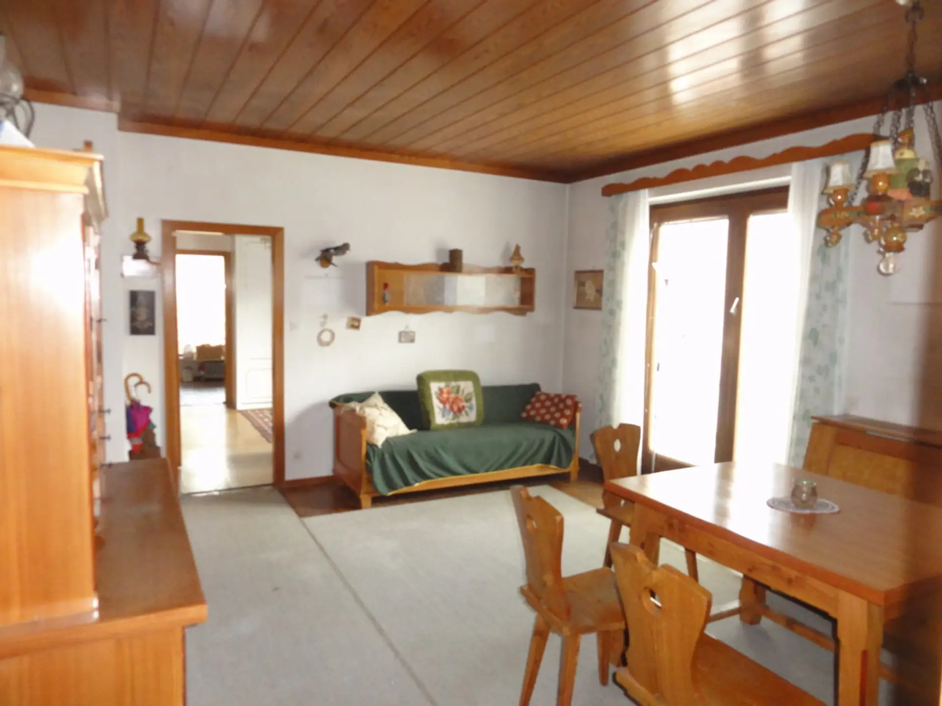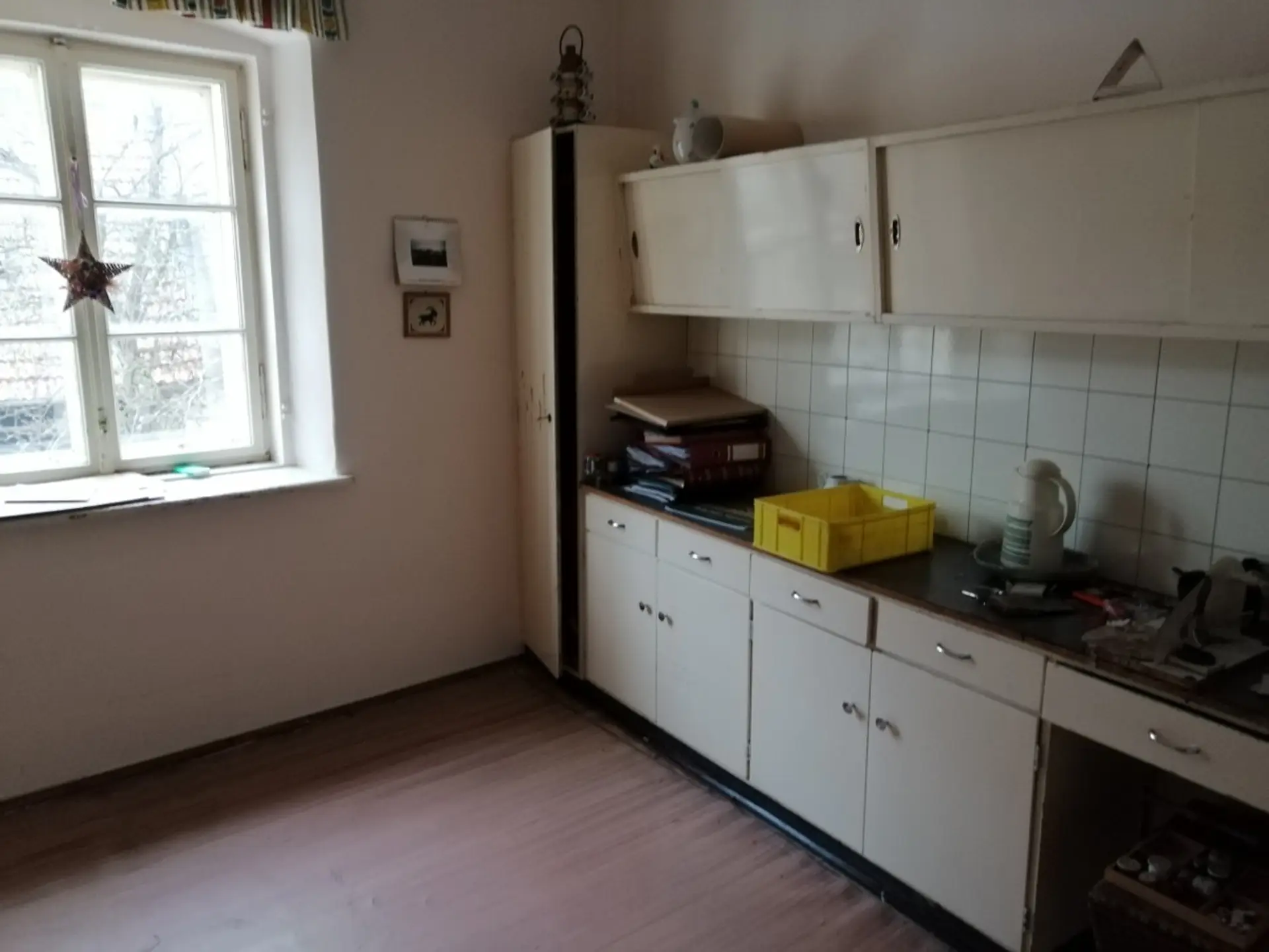 Im Oberschoß gibt es eine klassische Altbauwohnung mit großen Räumen und Flügeltüren (Küche, 4 Zimmer, Nebenräume), Wohnfläche etwa 90m².
