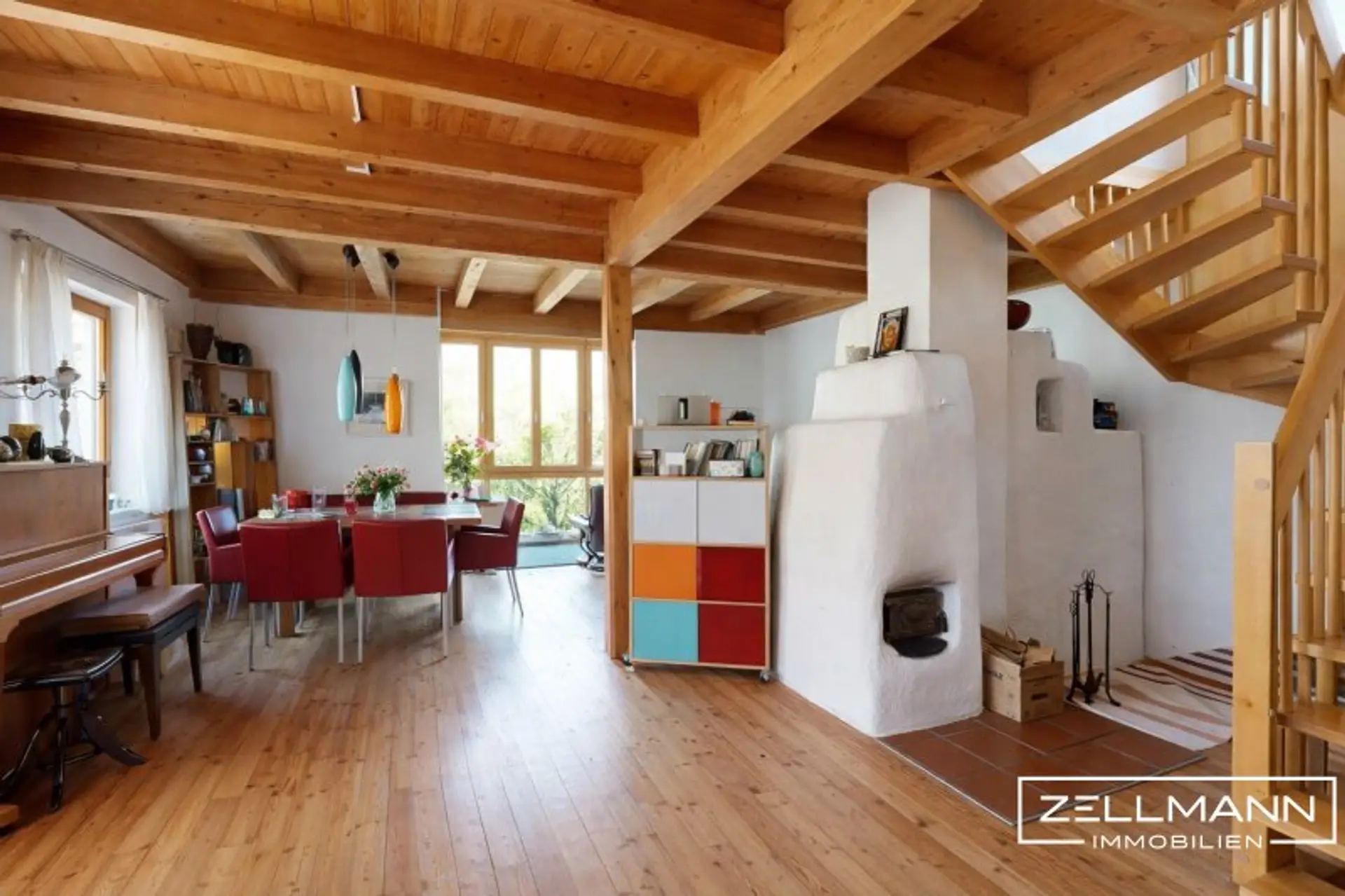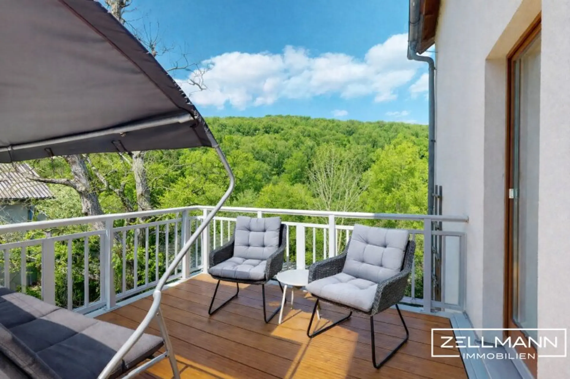 Das Herzstück des Hauses bildet die offene Wohnküche, die großzügigen Raum für gemeinsames Kochen, Essen und Verweilen bietet. Von hier aus gelangen Sie direkt auf den Ostbalkon, der mit einem herrlichen Blick in die grüne Umgebung sowie Fernblick zu entspannten Morgenstunden einlädt. Besonders hervorzuheben sind die zwei Terrassen sowie der gepflegte Garten, die vielfältige Möglichkeiten zum Entspannen im Freien bieten. Ob gemütliche Familienabende, gesellige Treffen mit Freunden oder ruhige Stunden in der Sonne – hier entsteht ein Lebensraum mit hoher Aufenthaltsqualität. Das Einfamilienhaus verfügt über zwei moderne Badezimmer mit Fenster sowie zwei separate WCs, wodurch auch bei mehreren Bewohnern ein hoher Alltagskomfort gewährleistet ist. Eine Zentralheizung sorgt für angenehme Wärme, während ein Kamin zusätzliche Behaglichkeit und Wohnqualität schafft.