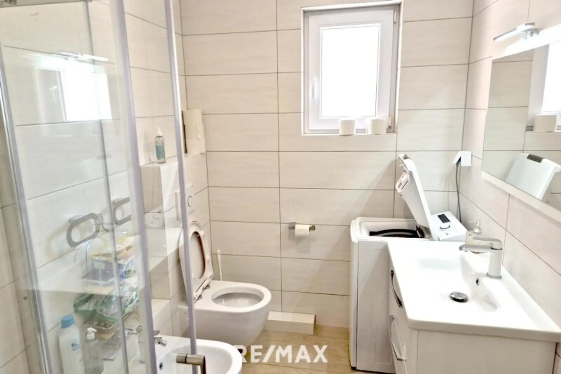 - Badezimmer mit WC, Bidet und Waschmaschine