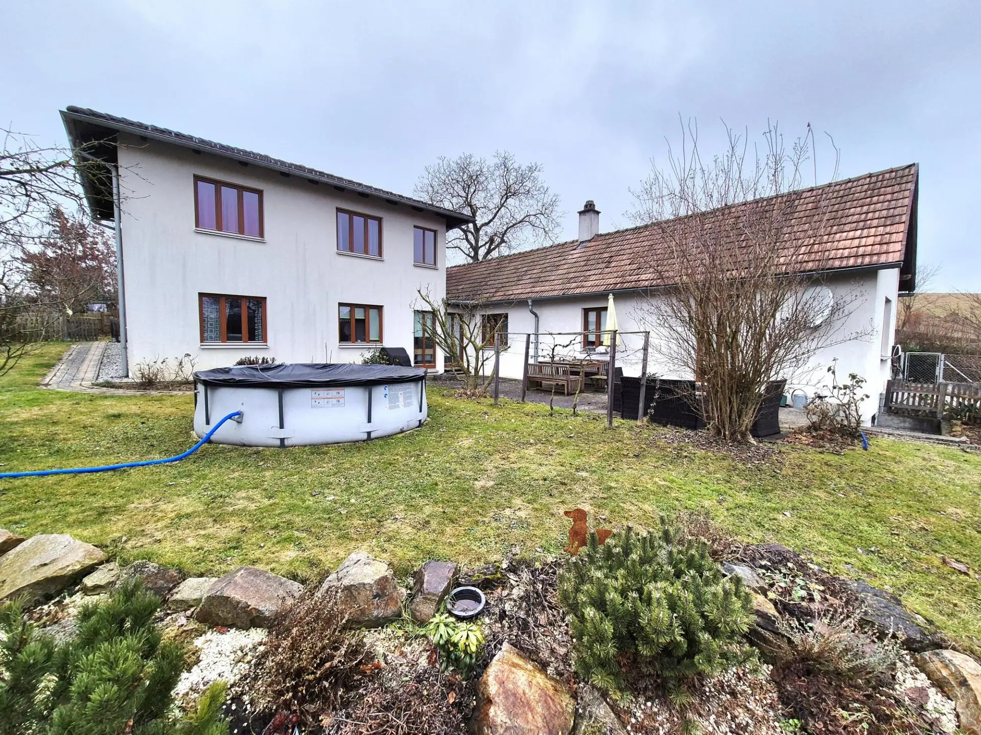 Durch die zwei Wohngebäude ergeben sich flexible Nutzungsmöglichkeiten – sowohl für große Familien als auch für getrennte Wohneinheiten.