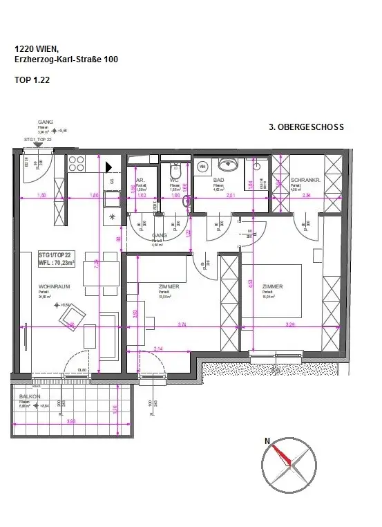 Diese moderne 3-Zimmer-Wohnung mit Balkon ist ein attraktives Investment im lebenswerten 22. Bezirk. Auf ca. 70 m² im 3. Obergeschoss eines kürzlich fertiggestellten Neubaus bietet die Wohnung einen ca. 7 m² großen, südwestseitigen Balkon. Die begehrte Lage garantiert langfristige Perspektiven und eine nachhaltige Wertsteigerung - perfekt für Eigennutzer sowie Anleger gleichermaßen! Die Ausstattungs-Highlights: - Kunststoff-Alu-Fenster mit 3-fach-Isolierverglasung - Innentüren aus Holz und einbruchshemmende Wohnungseingangstüren - Parkettböden in Eiche Landhausdiele CHALE 190 - Feinsteinzeug-Fliesen im Format 30 × 60 cm - Sanitärmöbel von LAUFEN und Armaturen von GROHE - Digitale Videogegensprechanlage - Elektrische, außenliegende Raffstores an allen Fenstern - Wasser- und Stromanschlüsse auf allen Balkonen und Terrassen - Hochwertige Steinbeläge auf sämtlichen Außenflächen - Luftwärmepumpe mit Fußbodenheizung - Kinderwagen- und Fahrradabstellraum - Großzügige Tiefgarage mit E-Ladevorbereitung - Aufzug in alle Stockwerke - Klimaanlage im 2. Dachgeschoss installiert, im 1. Dachgeschoss vorbereitet - Modernes Wohnkonzept für höchste Ansprüche an Komfort, Design und Nachhaltigkeit - Attraktive Freiflächen mit Blick auf Teich und Parkanlage Die Lage-Highlights: - Buslinien 26A und 94A (3 Gehminuten) - Straßenbahnlinie 25 (4 Gehminuten) - Bahnhof Erzherzog-Karl-Straße (5 Gehminuten) - Supermarkt (2 Gehminuten) - Otto-Affenzeller-Park (3 Gehminuten) - Lagerwiese Rehlacke / An der unteren Alten Donau (5 Minuten mit dem Rad) - Zahlreiche Gastronomieangebote Der Kaufpreis für diese in ausgezeichneter Lage und Infrastruktur befindliche Eigentumswohnung beträgt Euro 499.900,-. Kaufpreis Garagenplatz (optional): EUR 32.000,- Anlegerfreundliche Netto-Variante mit USt-Überrechnung möglich! Vereinbaren Sie noch heute einen Besichtigungstermin und lassen Sie sich von dieser besonderen Immobilie verzaubern. Diesbezüglich freuen wir uns über Ihre geschätzte Anfrage per Mail. Tipp: Die gesamte Anlage wird gerade parifiziert und abverkauft. Fragen Sie uns nach weiteren Objekten bzw. Paketangeboten! Wir möchten darauf hinweisen, dass unsere Antwort möglicherweise in Ihrem Spamordner landen könnte. Bitte kontrollieren Sie diesen, wenn Sie keine Rückmeldung auf Ihre Anfrage erhalten haben. Wir freuen uns auf Ihre Anfrage und einen gemeinsamen Besichtigungstermin! .