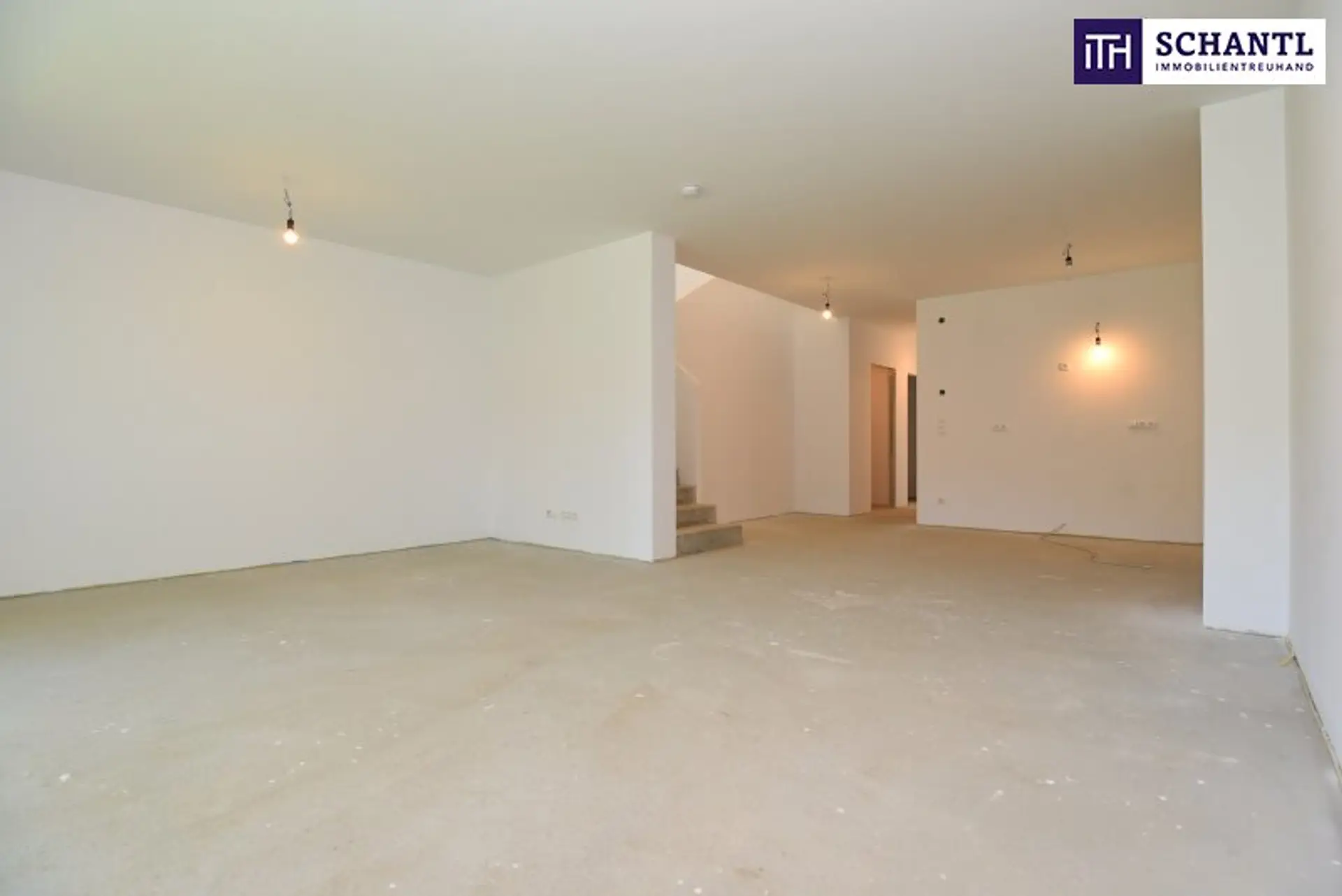Die dargestellten Bilder mit Bodenbelägen, Küche oder Einrichtungsgegenständen dienen lediglich zur veranschaulichenden Darstellung. Das Haus wird belagsfertig, weiß ausgemalen (ohne Innentüren) übergeben – die endgültige Gestaltung der Oberflächen, Böden und des Interieurs obliegt dem Käufer.