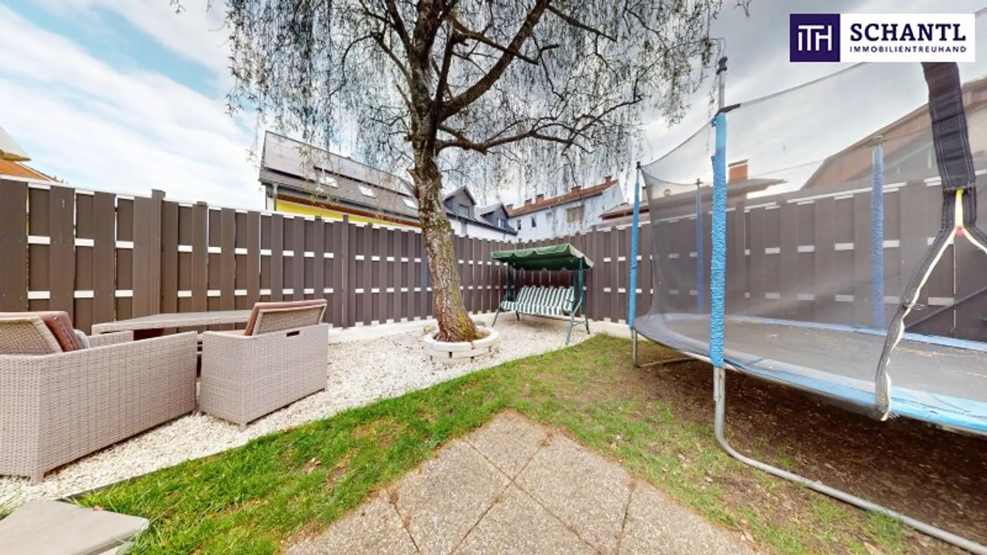 • Der Hintergarten ist privat, gut eingezäunt und daher ideal für Kinder zum Spielen. Hier gibt es genug Platz für Grillabende, ein Planschbecken oder einen kleinen Pool – ein geschützter Außenbereich, der schnell zum Lieblingsort der Familie im Alltag wird.