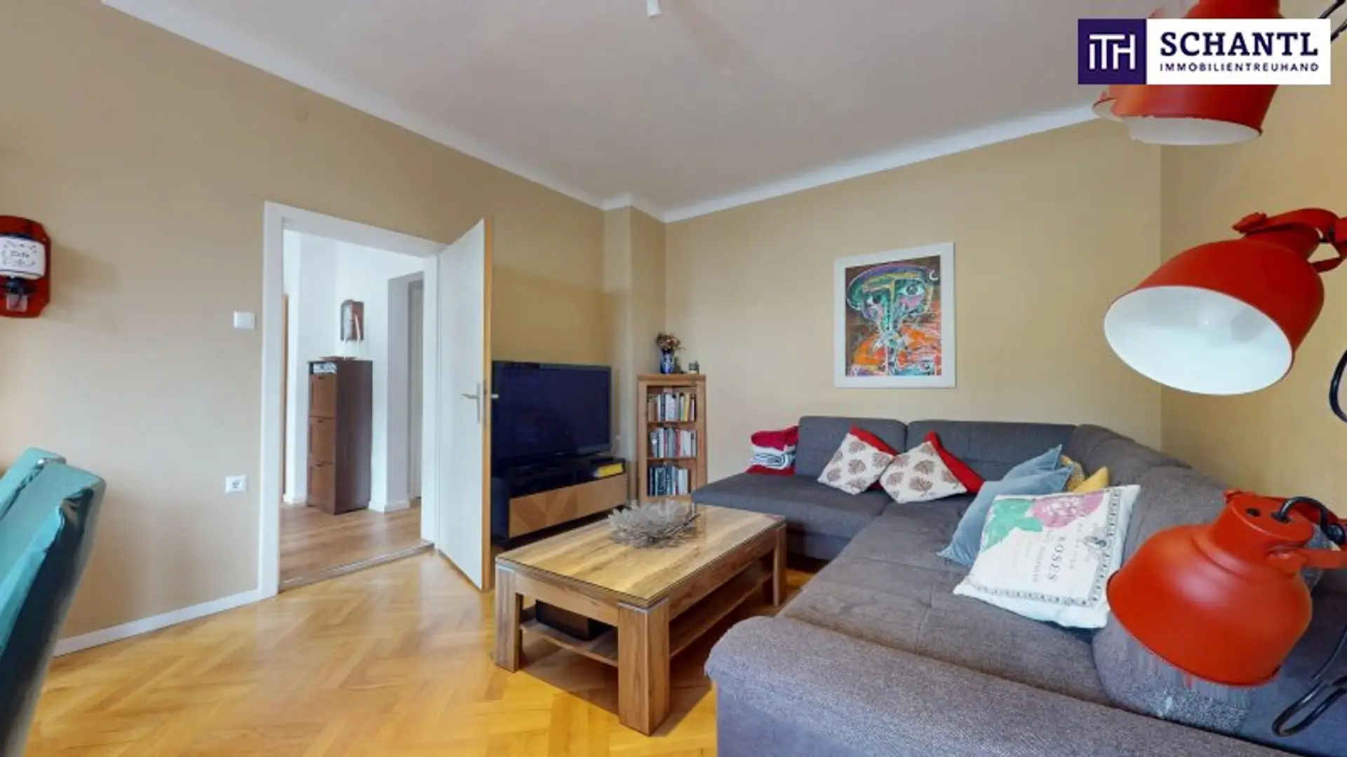 * Hochwertiger Parkettboden, teilweise im eleganten Fischgrätmuster