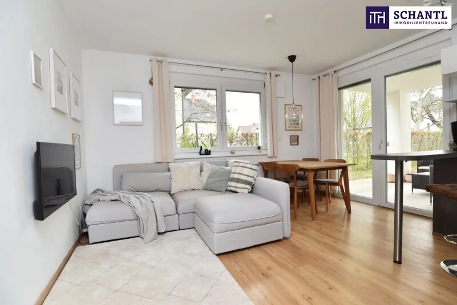 Der offen gestaltete Wohn‑/Essbereich bietet viel Platz zum Entspannen und Wohlfühlen und führt direkt auf die sonnige Terrasse in Richtung Garten, perfekt für gemütliche Stunden im Freien. Das Schlafzimmer sorgt für eine angenehme Rückzugsmöglichkeit. Ein freundlicher Vorraum bietet Platz für Garderobe und Stauraum. Das modern ausgestattete Badezimmer verfügt über Dusche, WC sowie einen Waschmaschinenanschluss und rundet das Raumangebot komfortabel ab.