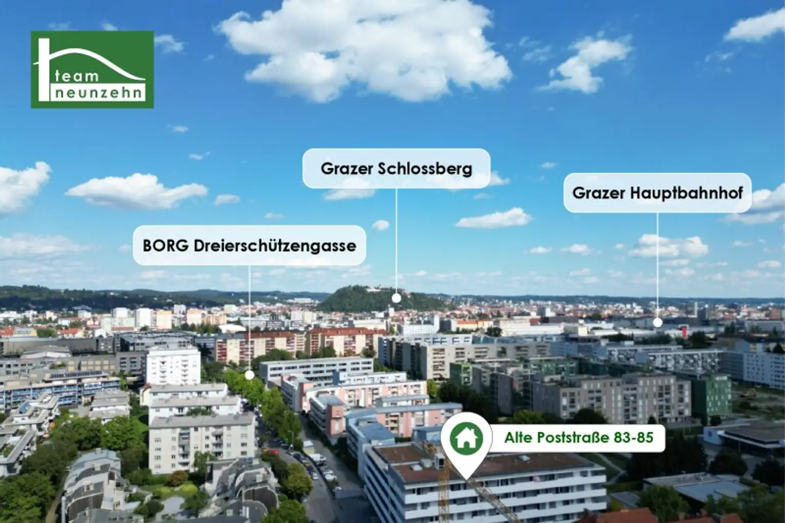 Das Projekt befindet sich nahe dem Grazer Hauptbahnhof mit umfassender Nahversorgung, Gesundheitseinrichtungen, Schulen, Kinderbetreuung und vielfältigen Freizeitangeboten in unmittelbarer Umgebung.