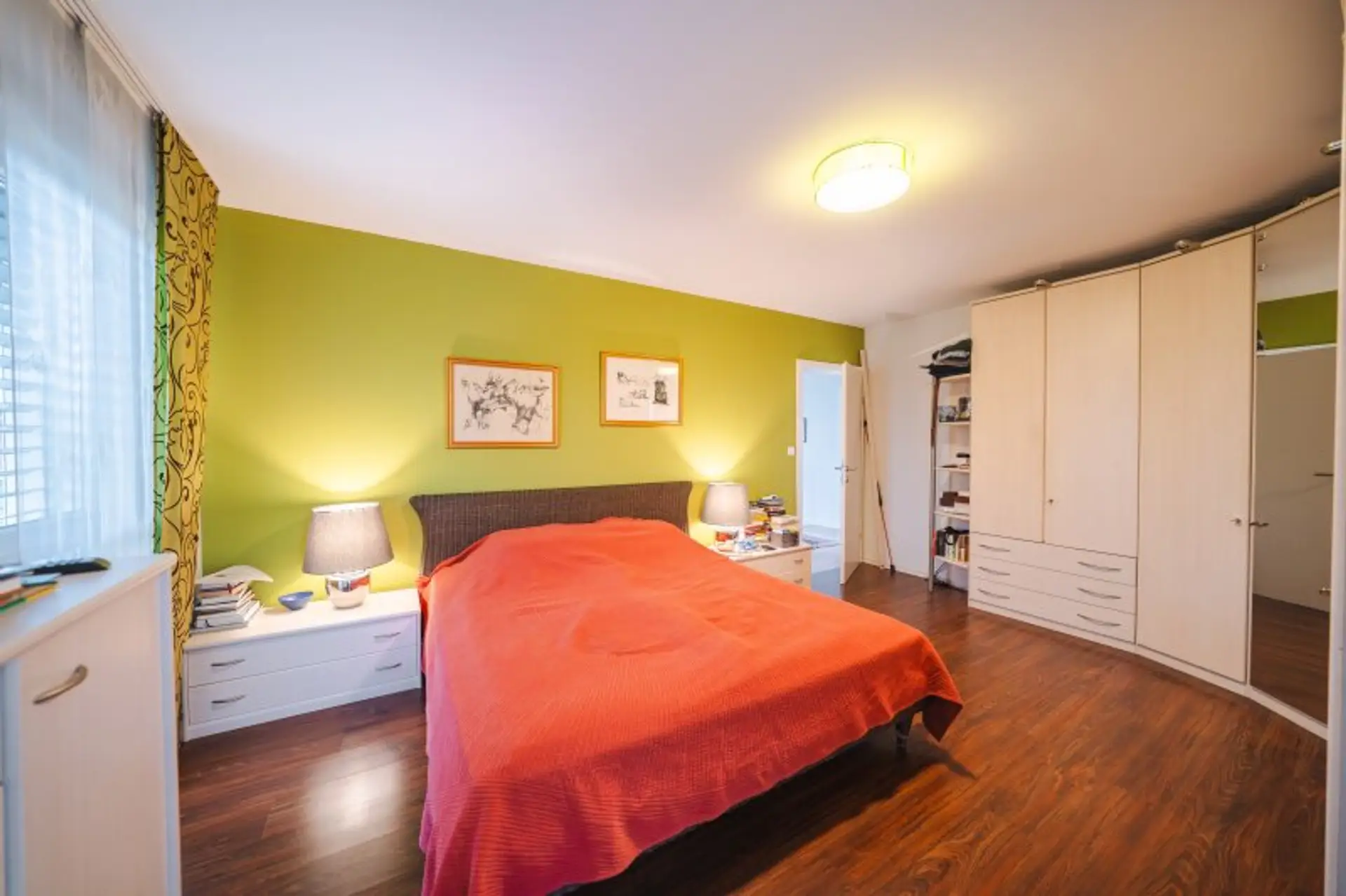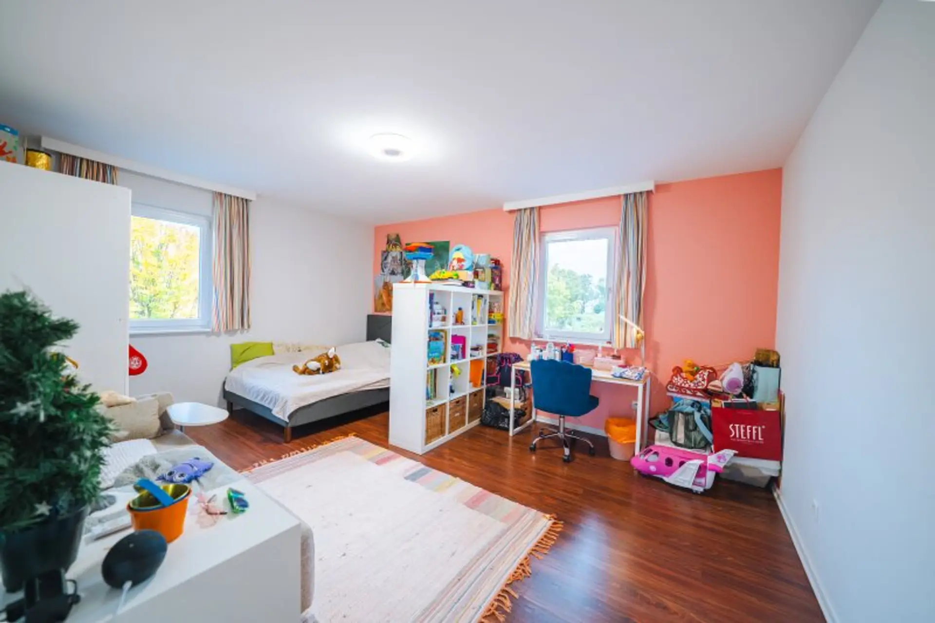 Im Obergeschoss stehen drei Zimmer zur Verfügung, die dank der bodentiefen Fenster mit Tageslicht durchflutet sind. Alle Räume bieten ausreichend Platz zur individuellen Gestaltung – etwa als Kinderzimmer, Homeoffice oder persönlichen Rückzugsort.