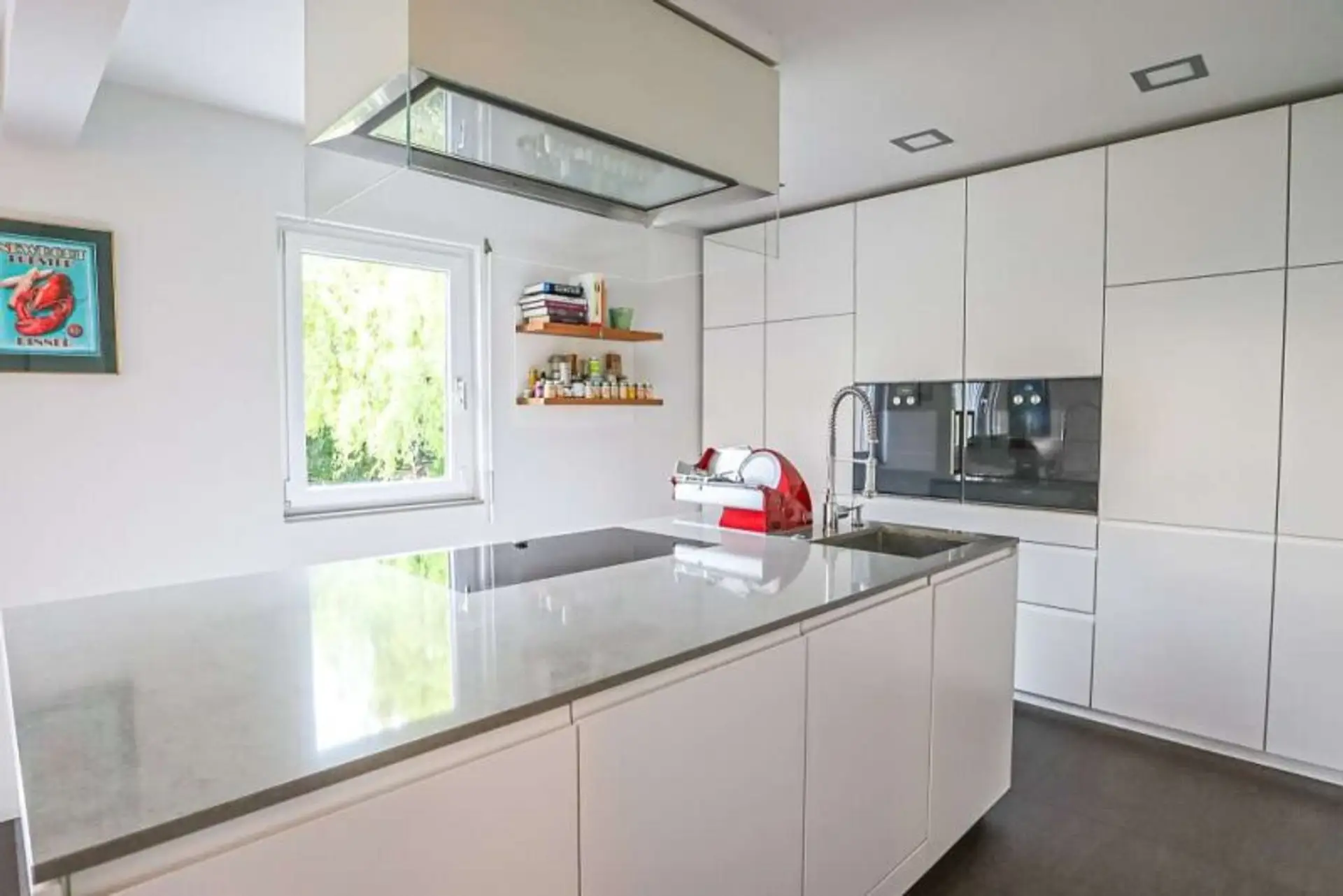 Die stilvolle Tischlerküche fügt sich harmonisch in den Wohnraum ein - offen, elegant und hochwertig ausgestattet: Kühlgeräte von _Liebherr_, Geschirrspüler von _Bosch_, Dampfbackofen (inkl. Wärmeschublade) von _Gaggenau. _Damit ist sie nicht nur funktional, sondern auch ein echter Blickfang für alle, die gerne kochen und genießen.