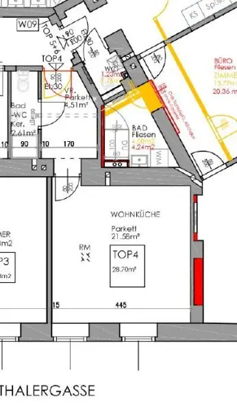 Es handelt sich um eine kompakte Wohnung. Auf Grund des Wunsches des Mieters gliedert sich die Wohnung in: