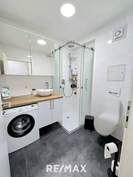 Lage: 1 Stock mit Lift, zentraler Vorraum, Schlafzimmer, Wohn/Essbereich mit Küchenzeile. Seperates Bad mit Dusche & Toilette.