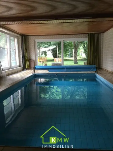 Weiters wurde 1980 ein Einfamilienhaus errichtet. Im Obergeschoß befindet sich die Wohnebene mit knapp 95m² Wohnfläche. Im Erdgeschoß ist außerdem eine Schwimmhalle mit WC-Anlage und Sauna vorhanden.
