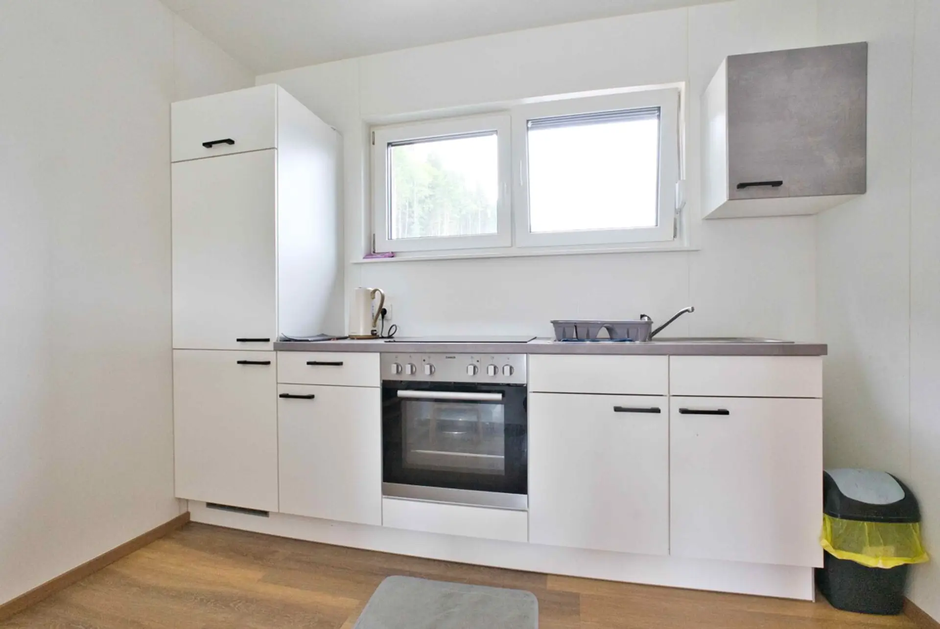 Ergänzt wird das Angebot durch ein freistehendes Lager beziehungsweise eine Garage, die ebenfalls in Holzriegelbauweise ausgeführt wurde und zusätzliche Nutzfläche bietet.