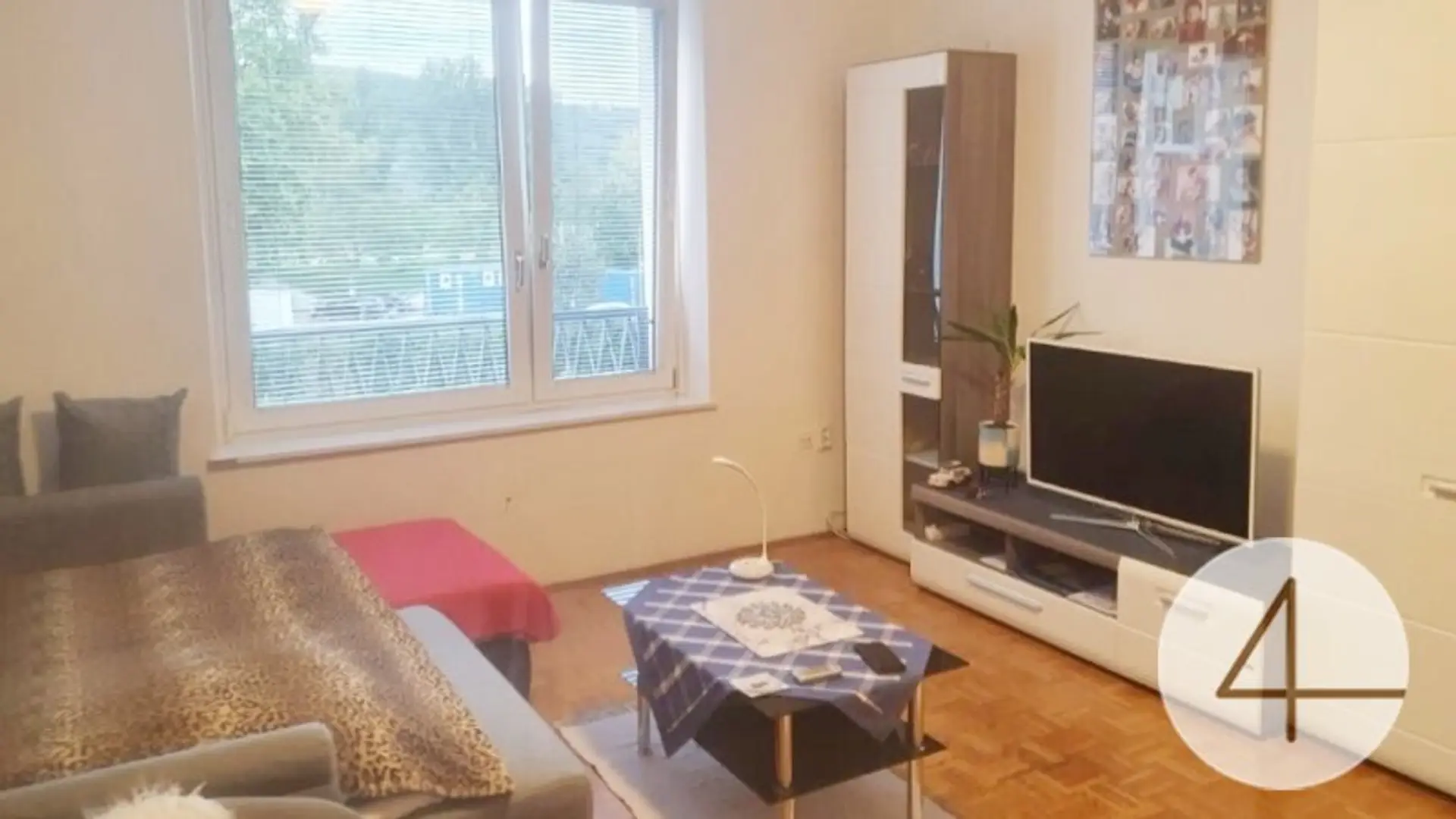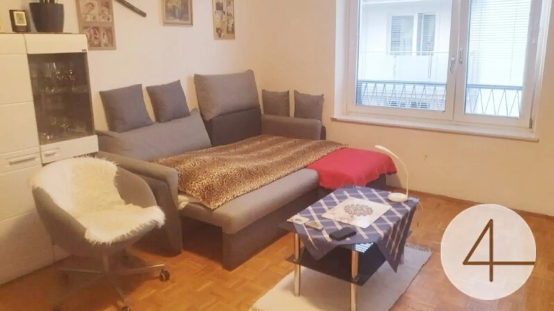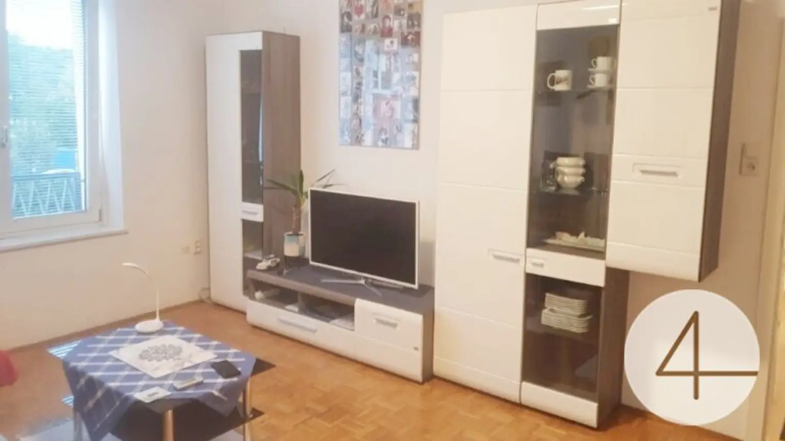 Die Wohnfläche gliedert sich in ein kombiniertes Wohn- und Schlafzimmer, eine separate Küche, ein Badezimmer mit Badewanne, ein Vorzimmer sowie einen zusätzlichen Abstellraum, der für ausreichend Stauraum sorgt.