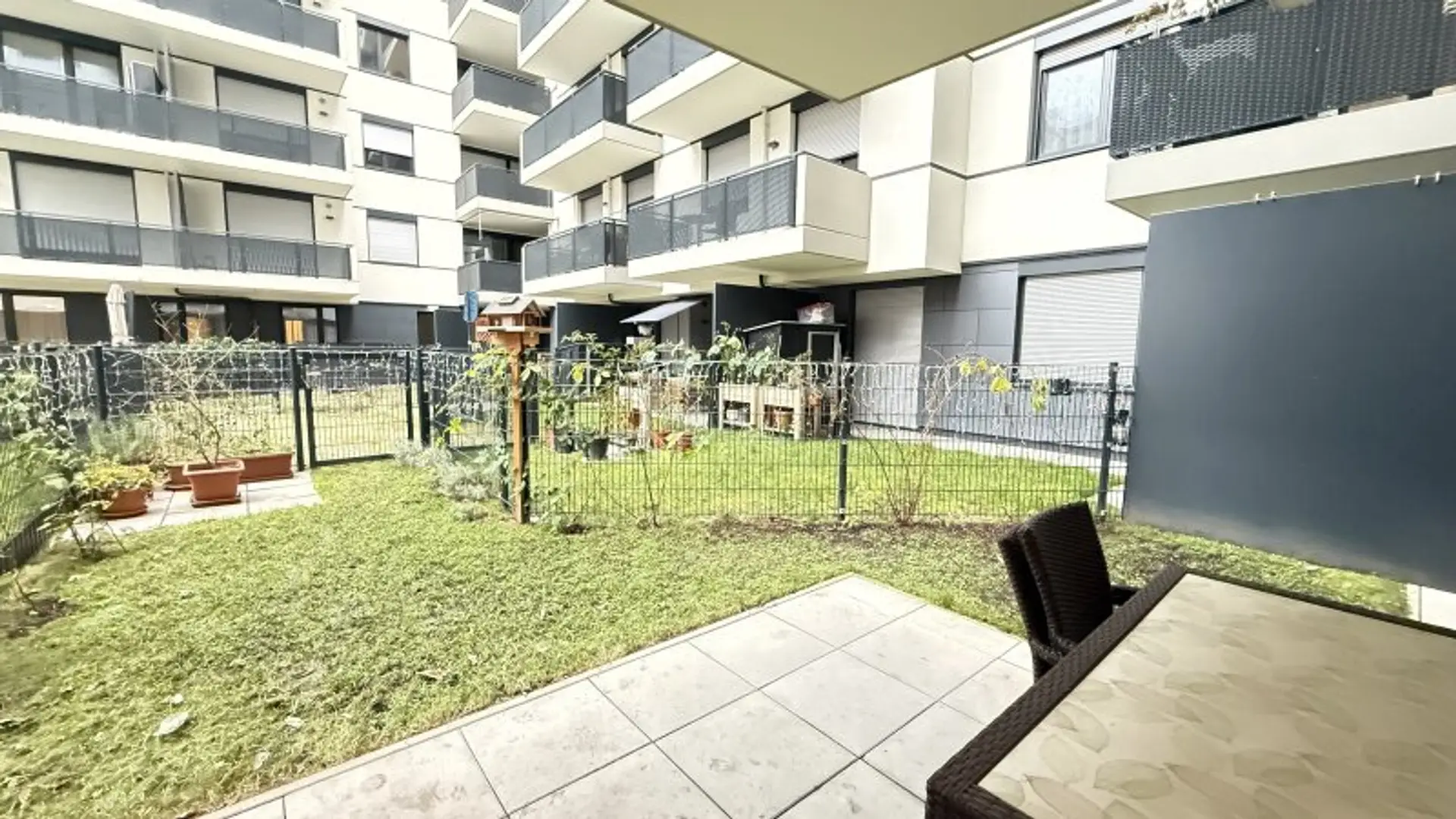 Neubau: neuwertige (derzeit vermietet) 2-Zimmer-Wohnung mit Terrasse und Garten;