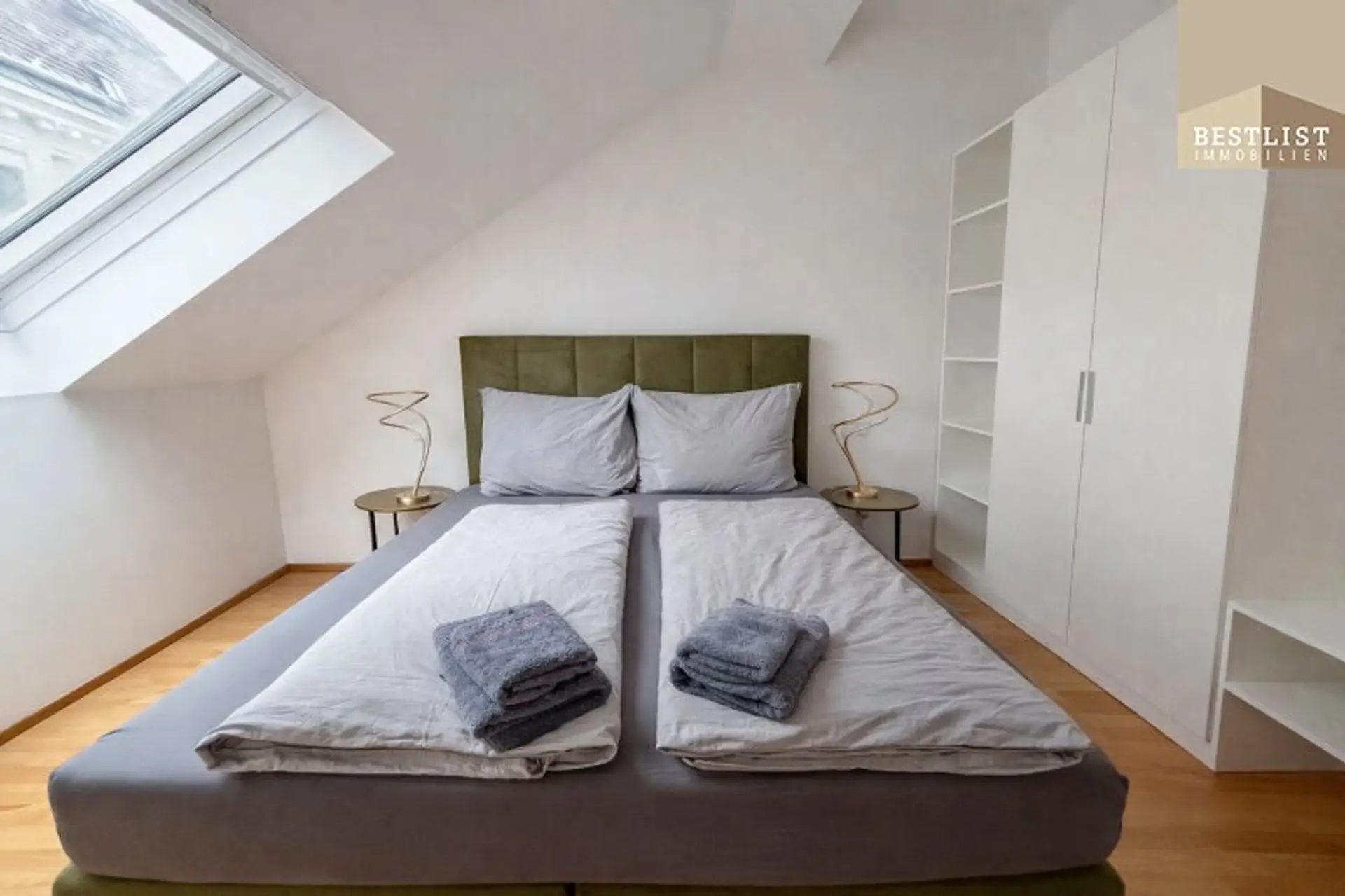 Die Wohnung befindet sich im Dachgeschoss eines klassischen Wiener Altbaus und wurde im Zuge eines modernen Ausbaus hochwertig adaptiert.