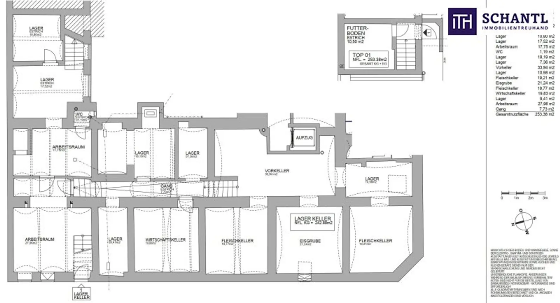 + TOP 1: ca. 253,38m² (davon EG 10,50m² + ST 242,88m²)