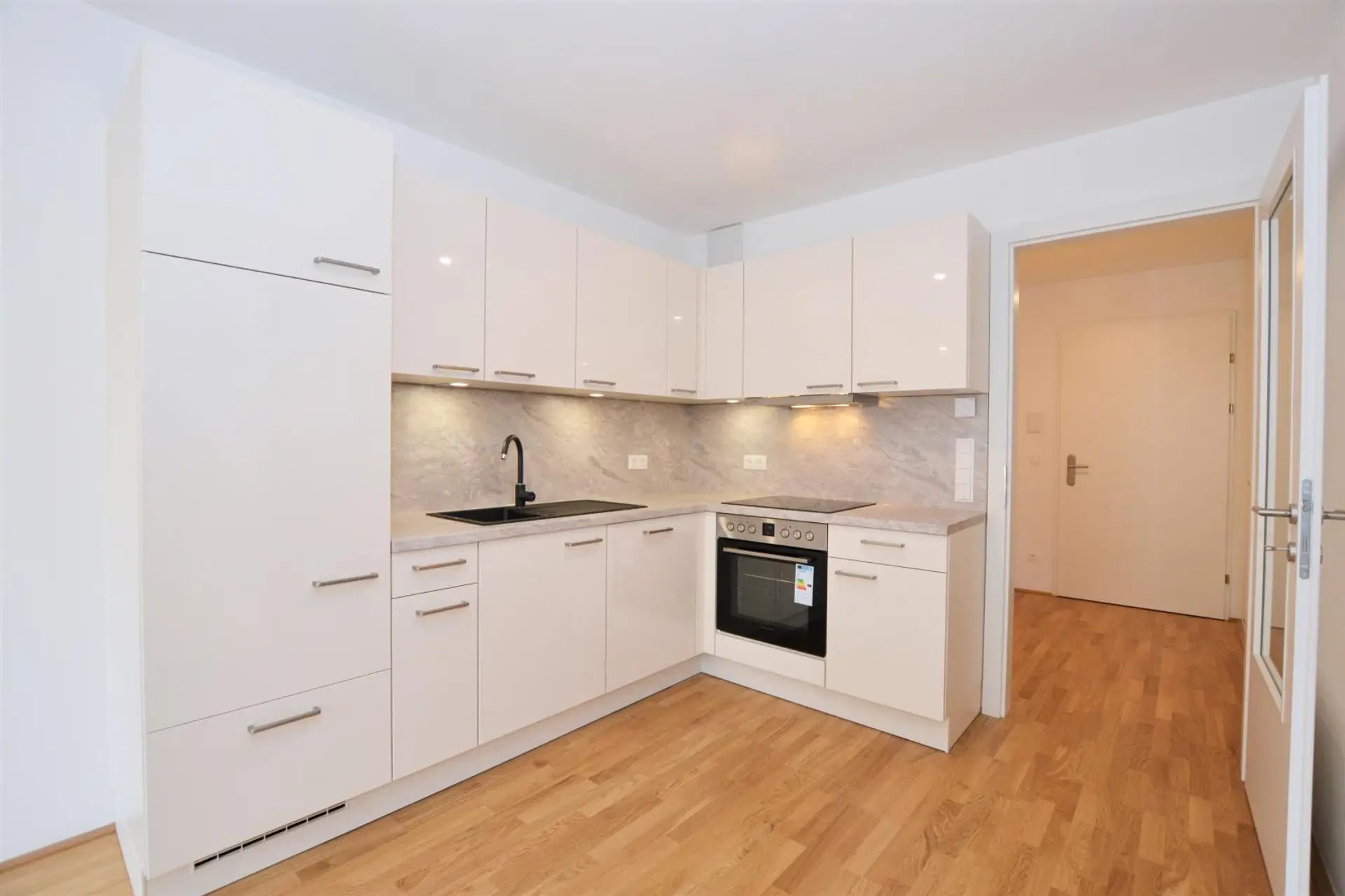 * Komplette Wohnküche inklusive aller Geräte (Geschirrspüler, Kühl-/Gefrierkombination, Induktionskochfeld, Backrohr und Dunstabzug).