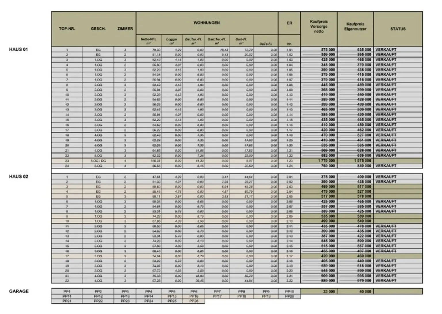Alle Preise beziehen sich als Vorsorgewohnungen und werden Netto ausgegeben. Die Endnutzerpreise sind dementsprechend höher und sind in der Preistabelle ersichtlich.