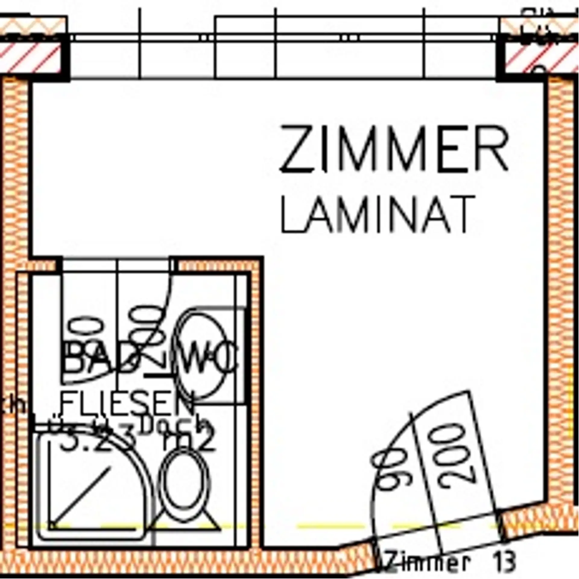 Die Wohnfläche umfasst ca. 12,38 m² und beinhaltet einen Wohn- und Schlafbereich sowie ein Badezimmer mit Dusche und WC.
