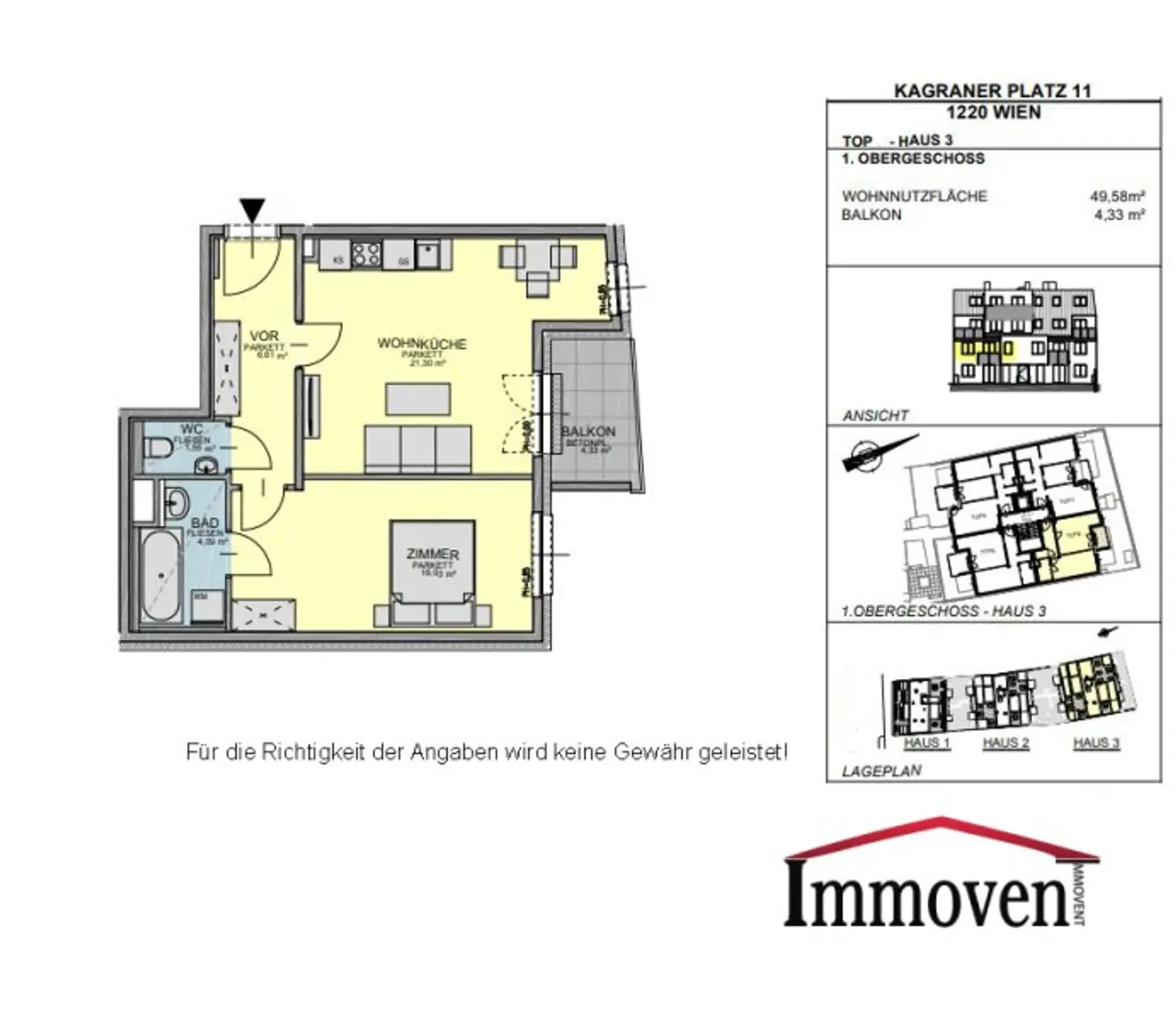 Im Falle einer erfolgreichen Vermittlung stellen wir 3 % des Kaufpreises zzgl. 20 % USt als Provision in gesetzlicher Höhe in Rechnung. Die obigen Angaben über dieses Objekt erfolgen mit der Sorgfalt eines ordentlichen Immobilienmaklers und basieren auf den Angaben und Informationen des Eigentümers. Daher können wir keine Gewähr für die Richtigkeit der Angaben leisten.
