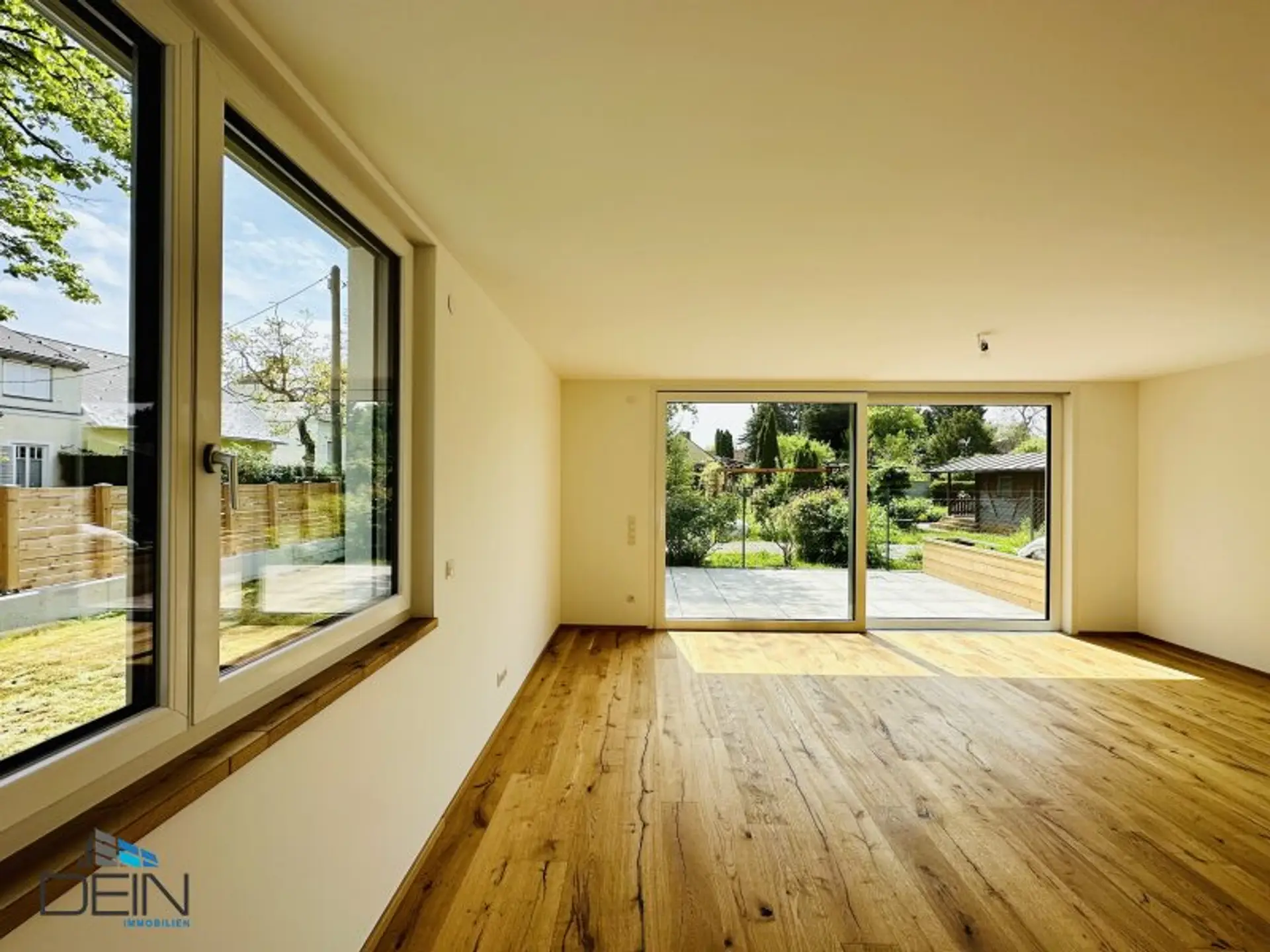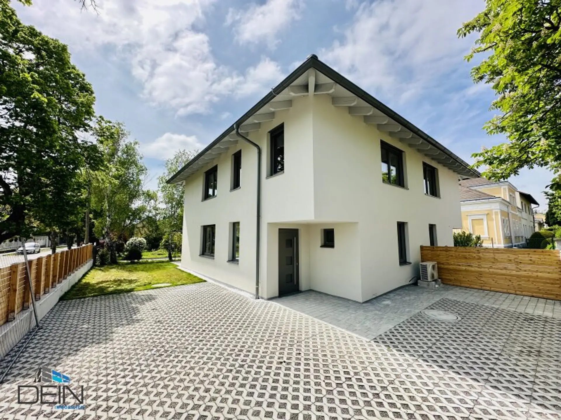 In den Wohn- und Schlafräumen sind hochwertige Eichenparkettböden verlegt worden. Die Nassräume wurden mit qualitativen Feinsteinzeugbelägen verfliest. Die Heizung (Fußbodenheizung) erfolgt mittels einer Luftwärmepumpe. Die Kunststofffenster sind von der Fa. Rekord und verfügen über einen außenliegenden Sonnenschutz. Im Garten wurde ein Rollrasen verlegt. Dem Haus sind zwei PKW-Stellplätze zugewiesen.