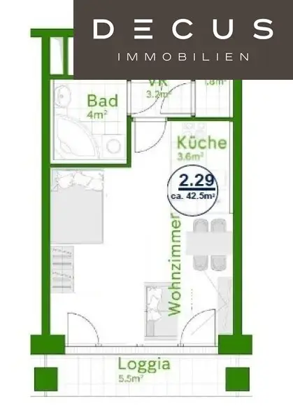 Diese gut eingeteilte Kleinwohnung mit großer Loggia