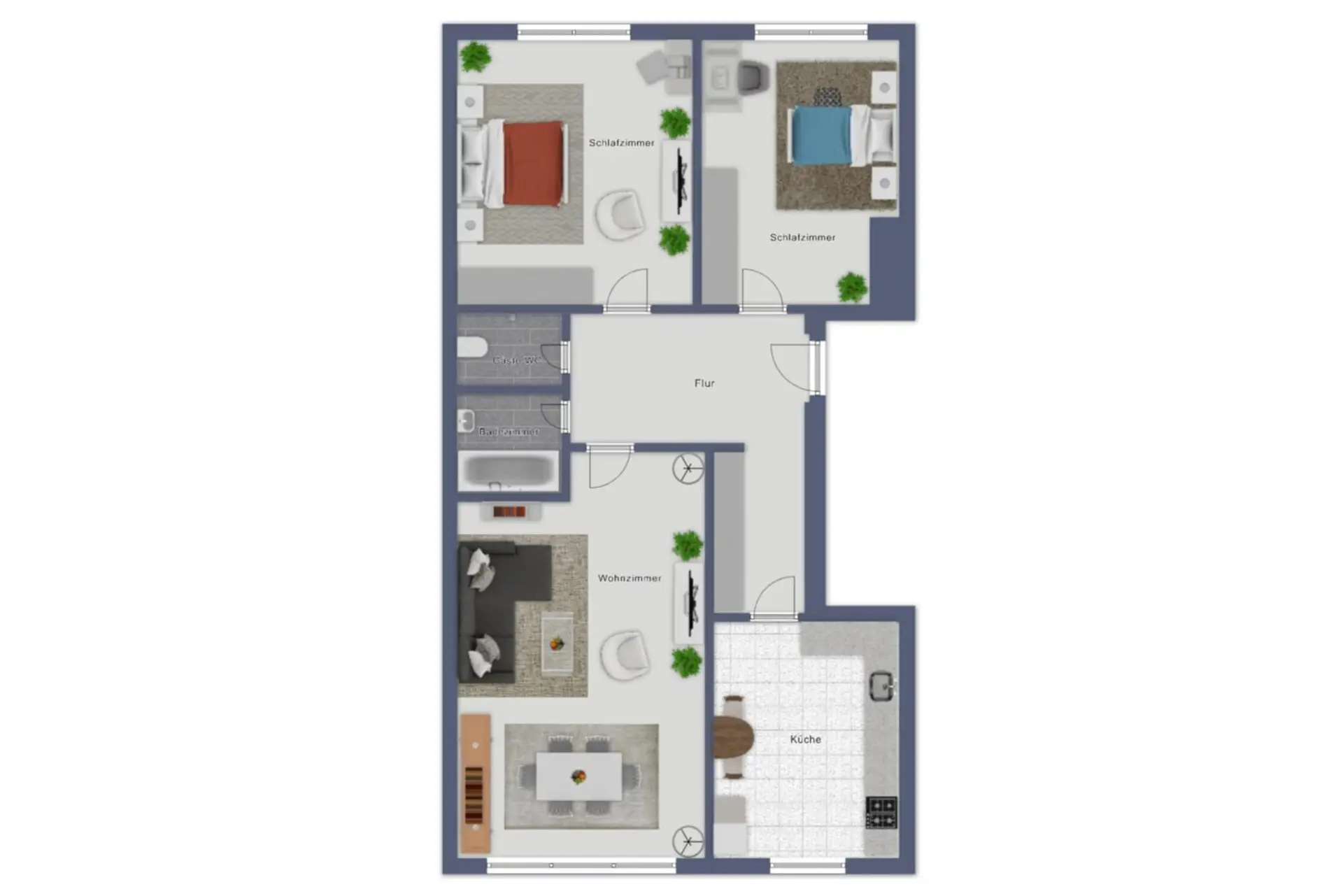 Alle Räume sind vom Vorraum aus zentral begehbar – eine durchdachte Raumaufteilung, die sowohl für Familien als auch Paare oder anspruchsvolle Singles ideal ist.