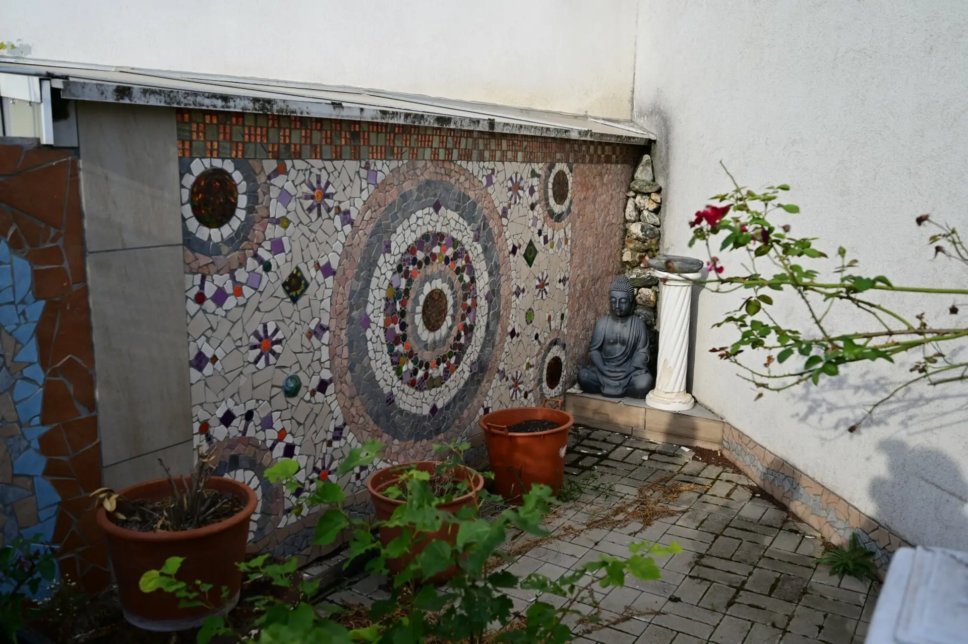 Viel Platz, große Büro/Schauräume, Lager, Parkplätze und 2 große Wohnungen mit je ca. 150m², Terrassen und Garten.