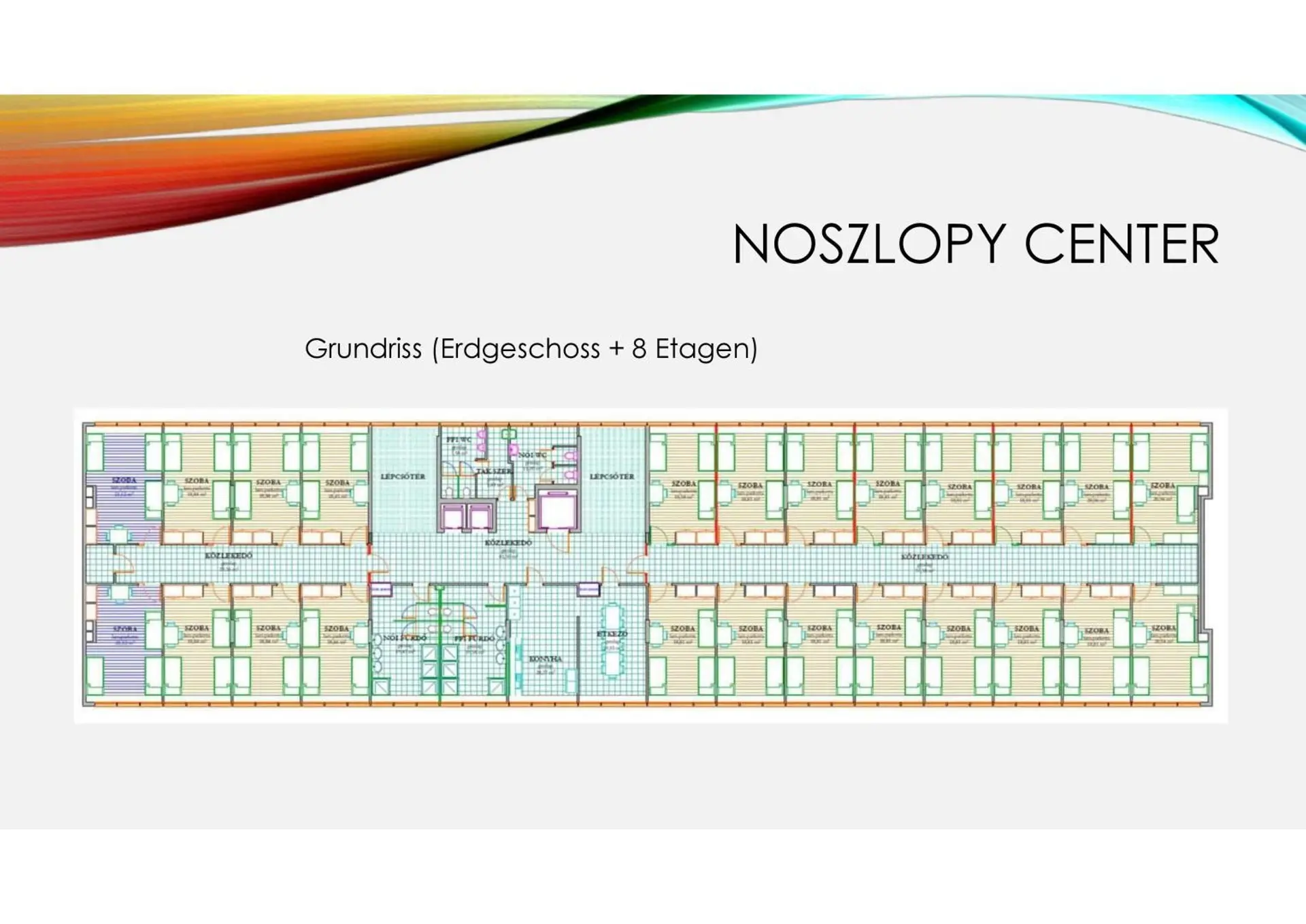 Auf insgesamt 8 Etagen mit 24 Zimmer pro Ebene, insgesamt 192 Zimmer mit einer Bewohnerkapazität von ca. 700 Personen.