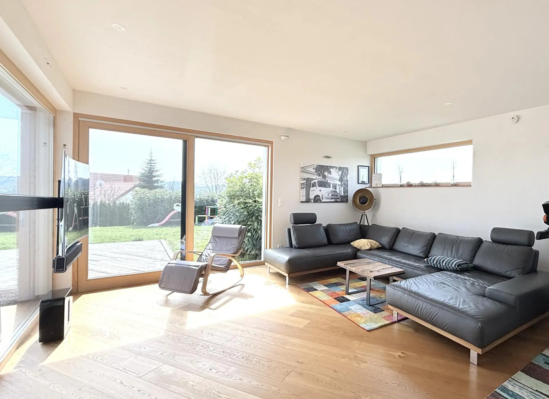 Die in ökologischer Holzriegelbauweise errichtete Liegenschaft verfügt über eine Wohnfläche von ca. 250 m² sowie eine Gesamtnutzfläche von ca. 320 m² und überzeugt durch eine durchdachte Raumaufteilung sowie lichtdurchflutete Wohnbereiche.