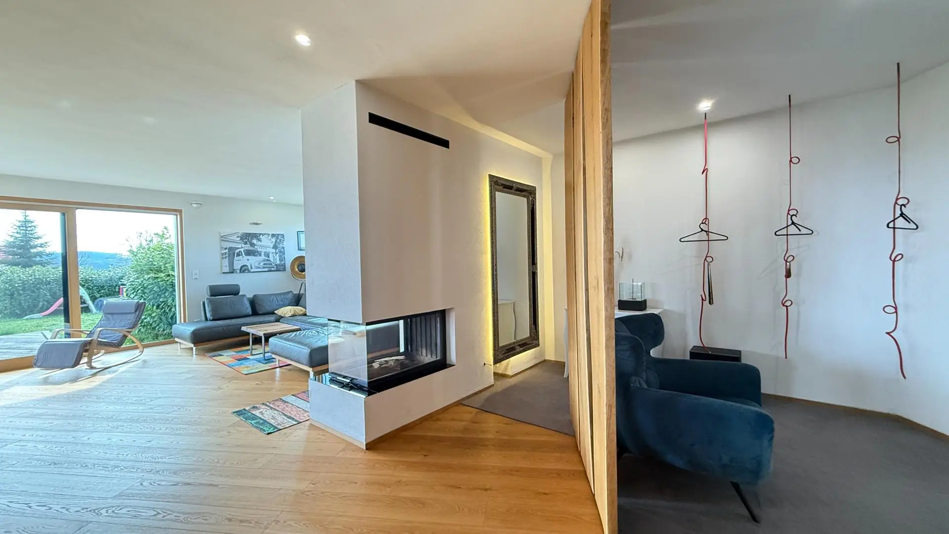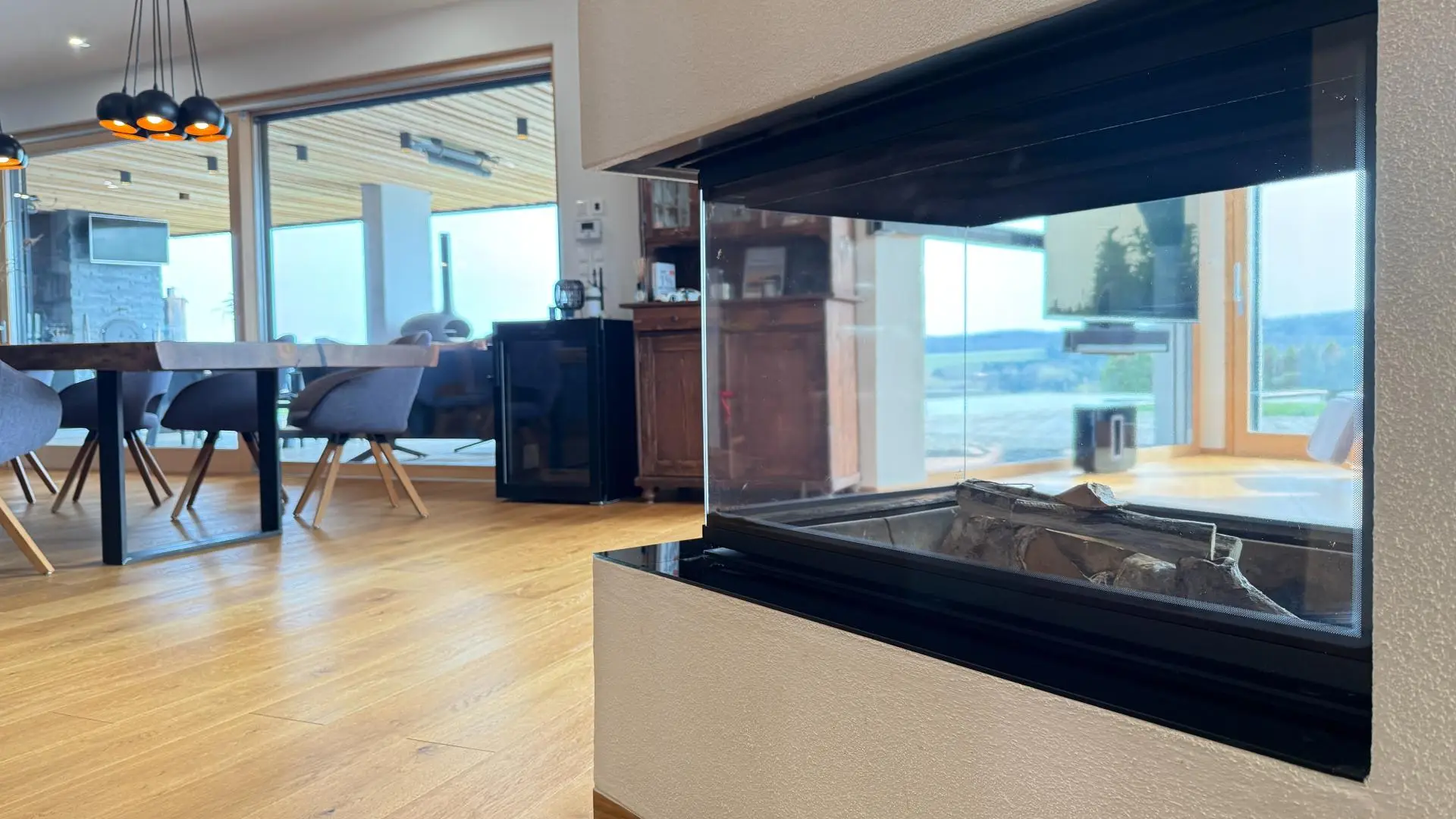 • Panoramakamin mit Glasflächen für stilvolle Wohnatmosphäre