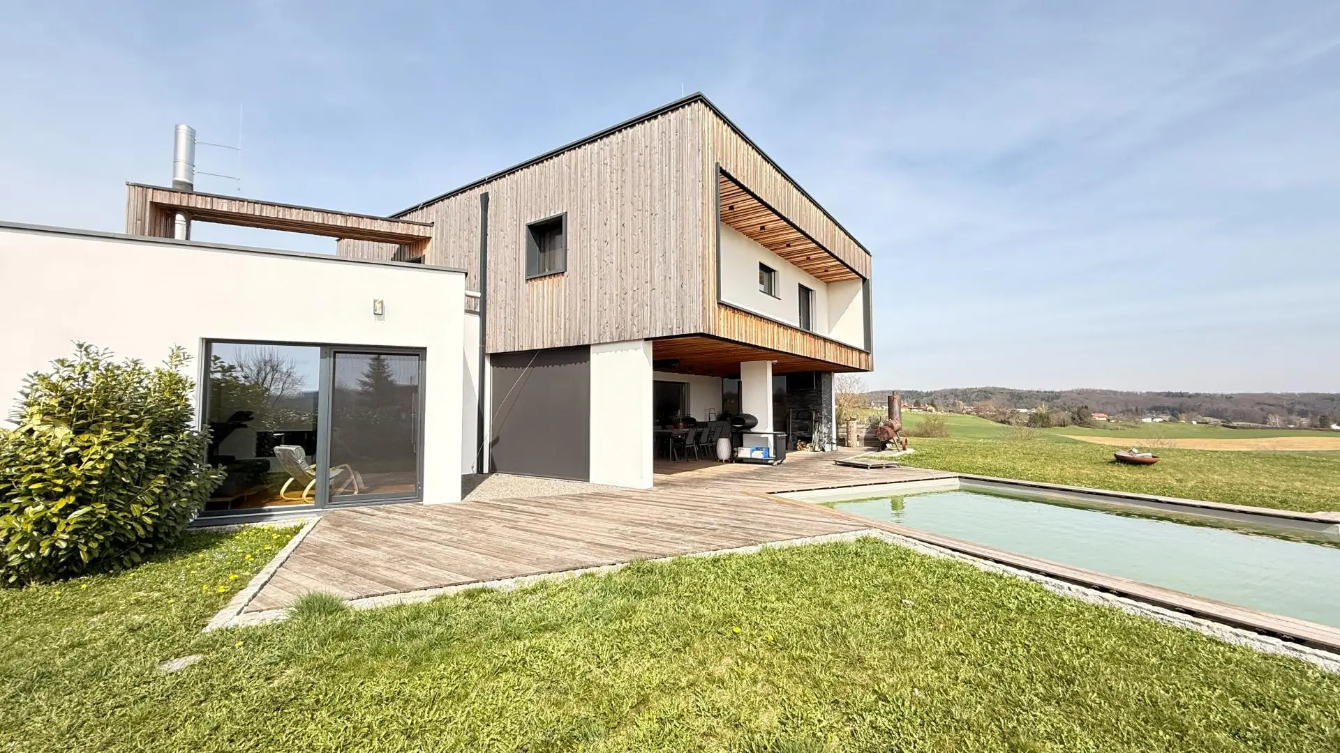 Exklusives Architektenhaus in ökologischer Holzriegelbauweise mit Infinity-Pool und Burgblick