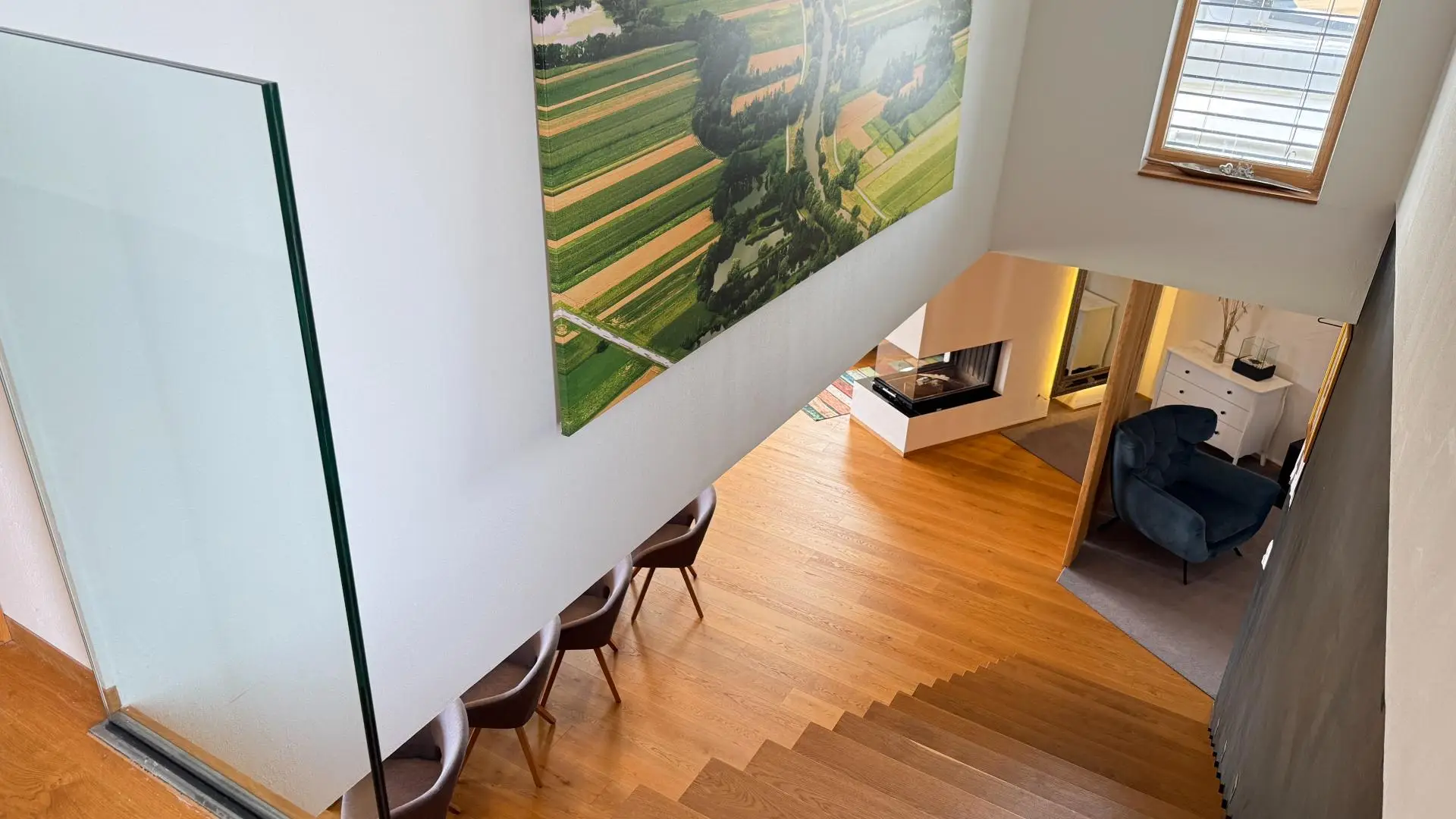 • Hochwertiger, geölter Klebeparkettboden im gesamten Wohnbereich