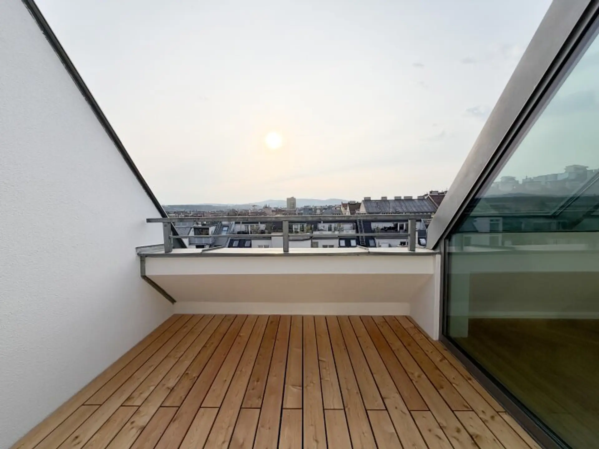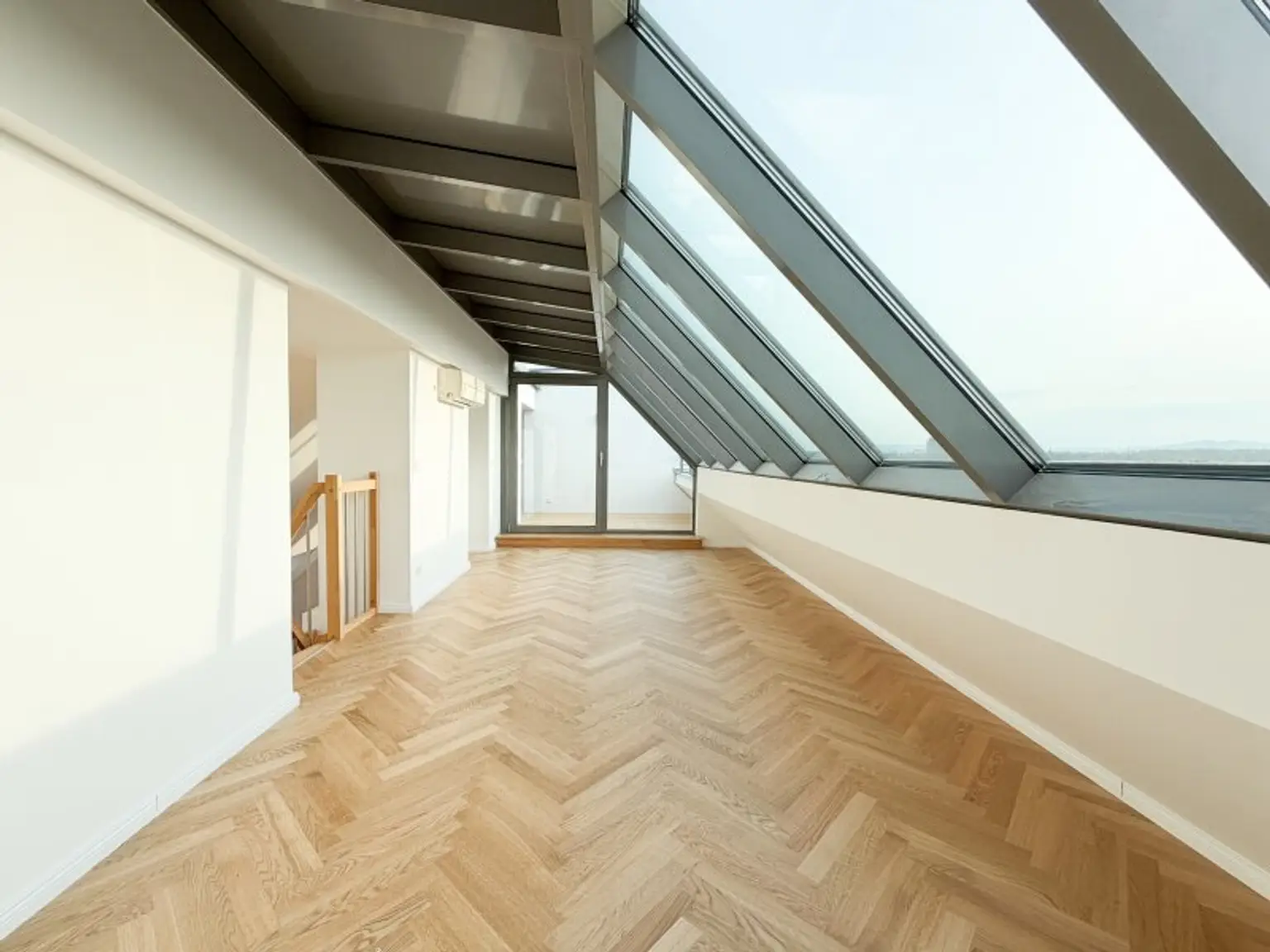 Ein architektonisches Highlight stellt die offene Galerie dar, die vielseitige Nutzungsmöglichkeiten bietet – ob als stilvoller Arbeitsbereich, ruhige Rückzugsoase oder exklusiver Loungebereich. Von hier aus gelangt man auf die sonnige Terrasse mit 8,38 m², die einen angenehmen Rückzugsort im Freien bietet und den privaten Charakter dieser Ebene unterstreicht.