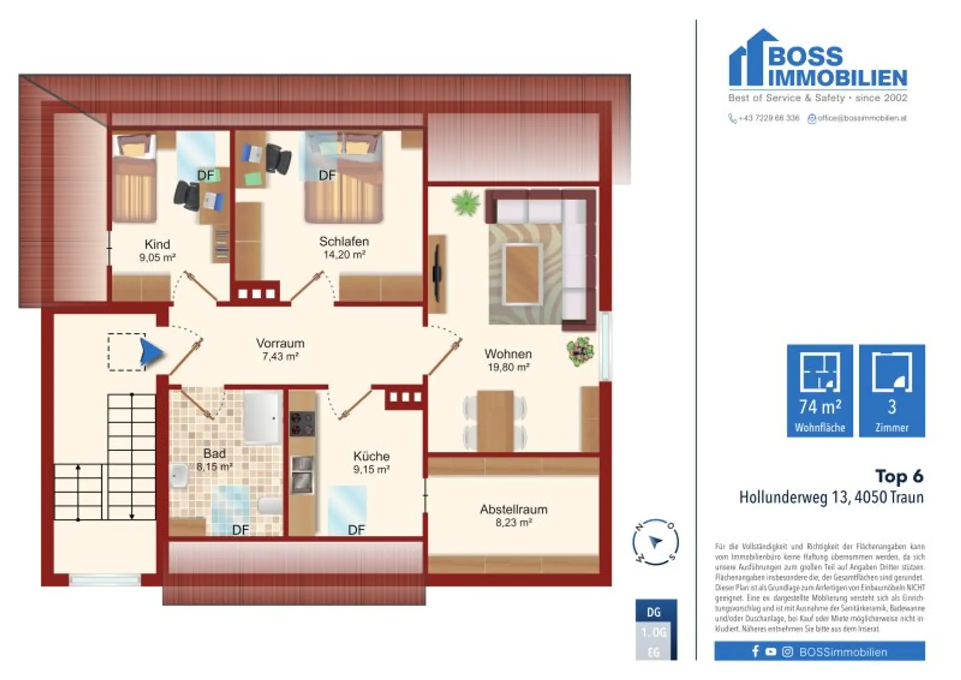 Inmitten einer ruhigen Wohnsiedlung, nur wenige Minuten vom Naherholungsgebiet Oedtsee und den Traunauen entfernt befindet sich dieser Wohntraum mit ca. 74 m².
