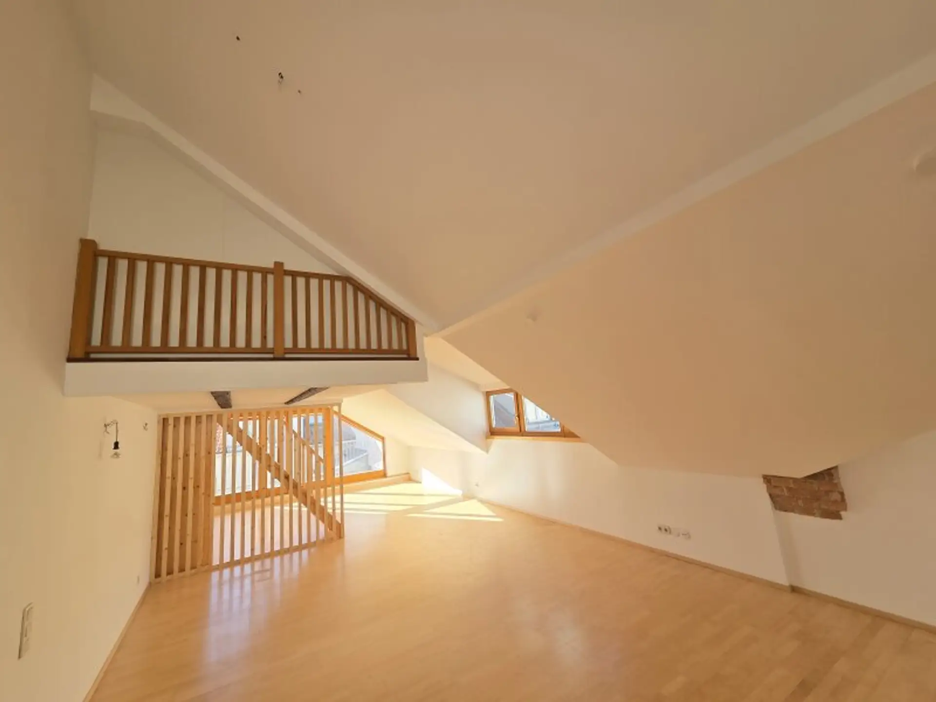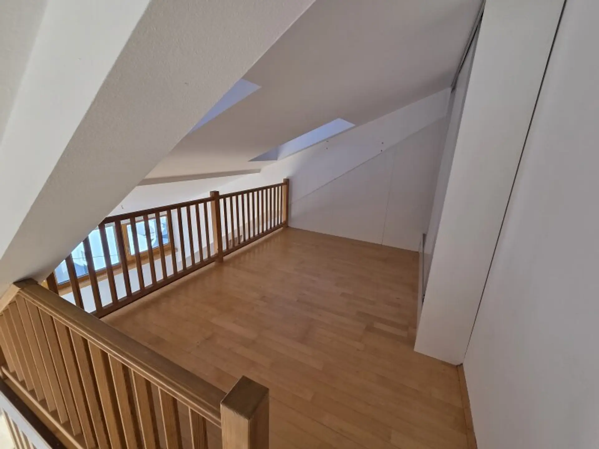 Atelierartige Wohnung im Dachgeschoss, Schlafnische und Badezimmer über Holztreppe auf Hochebene