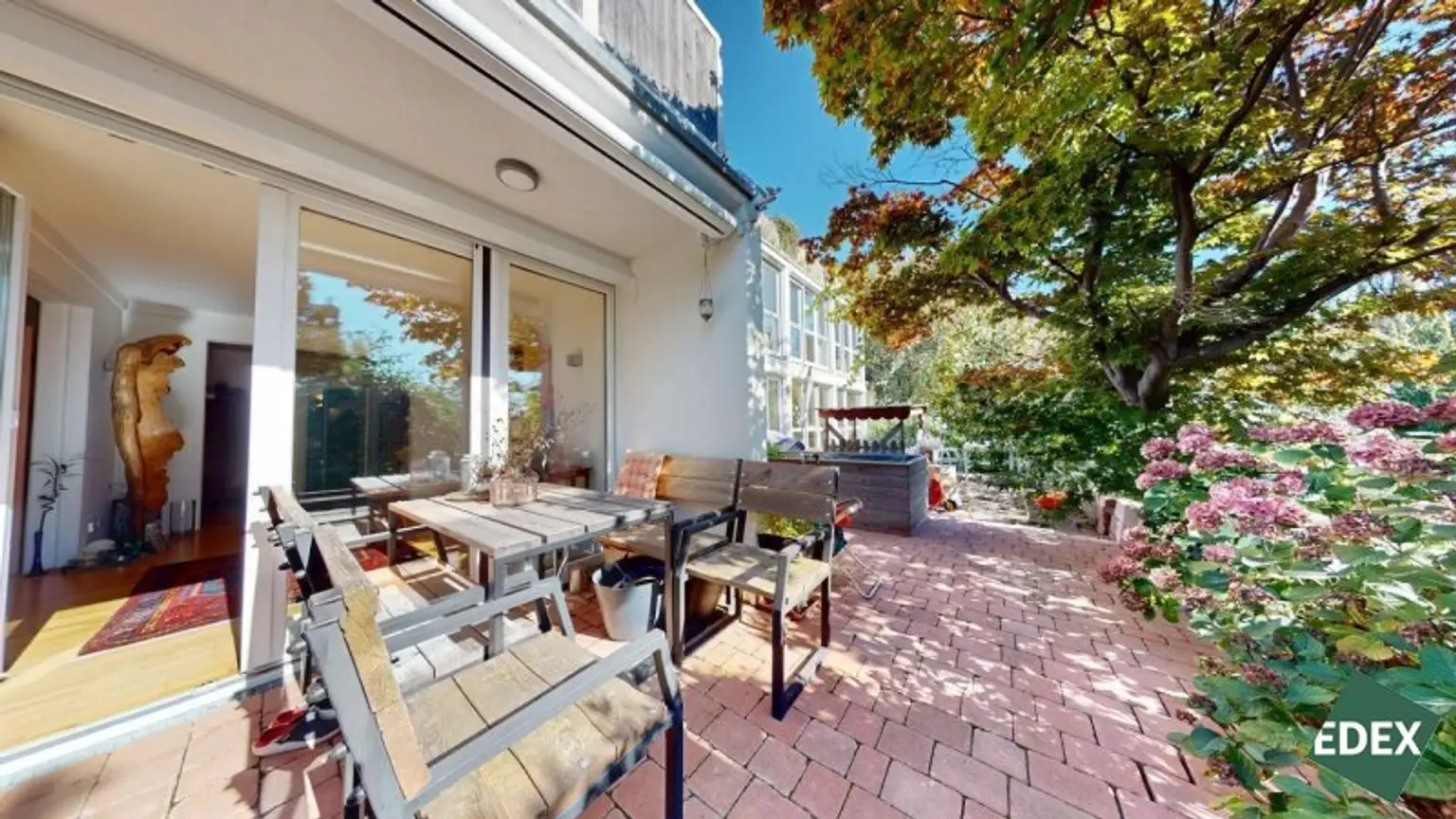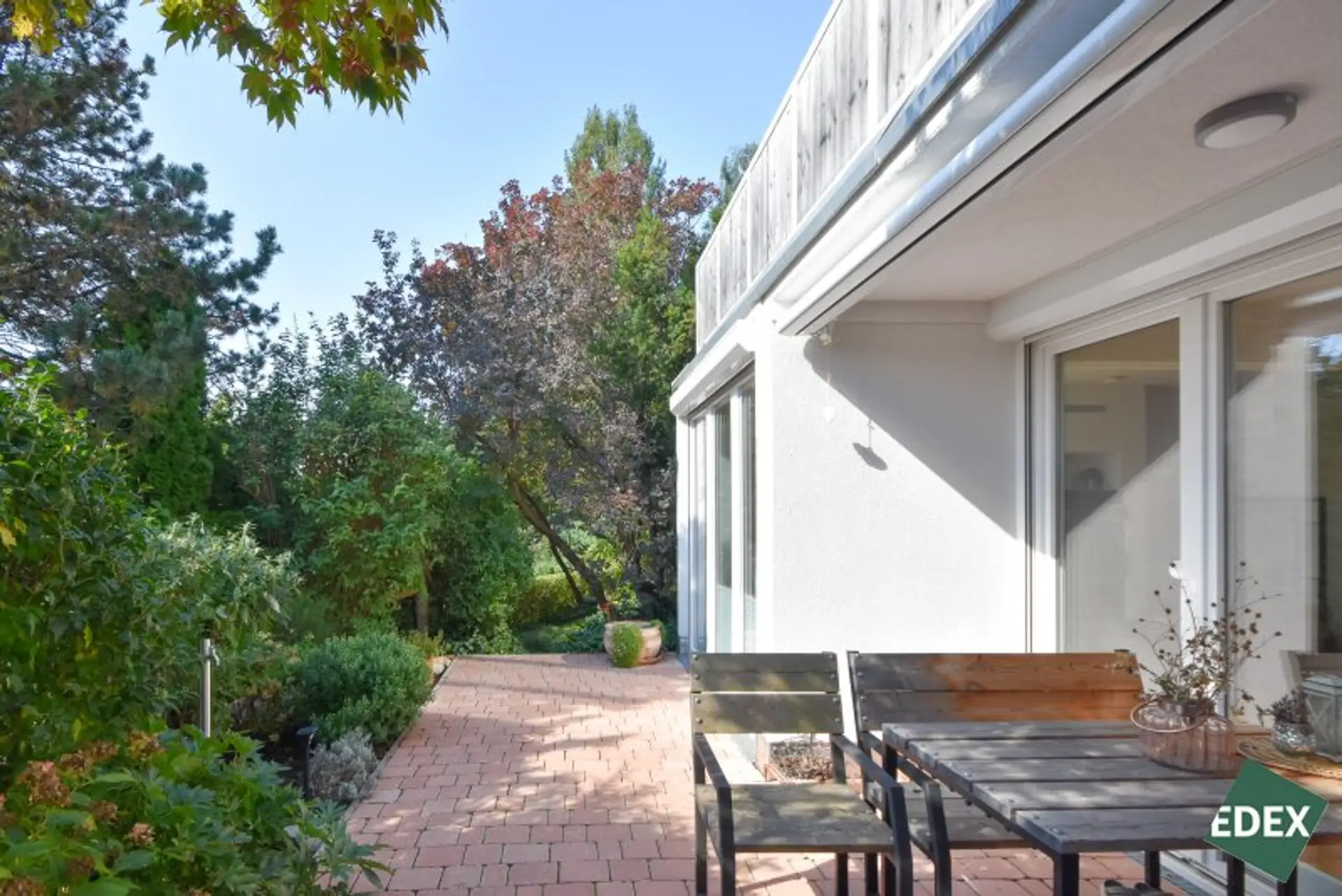 Zugang zur etwa 15,55 m² großen Gartenterrasse mit direktem Gartenzugang