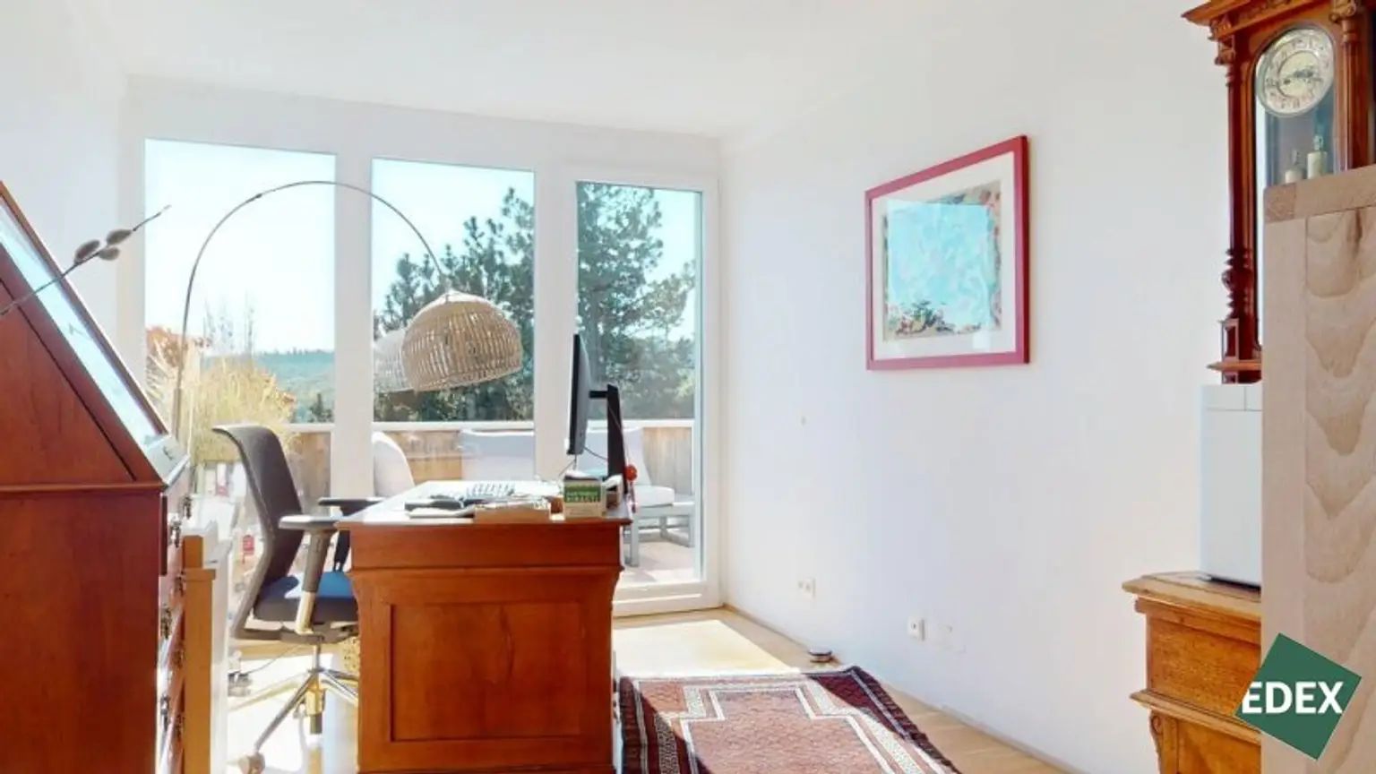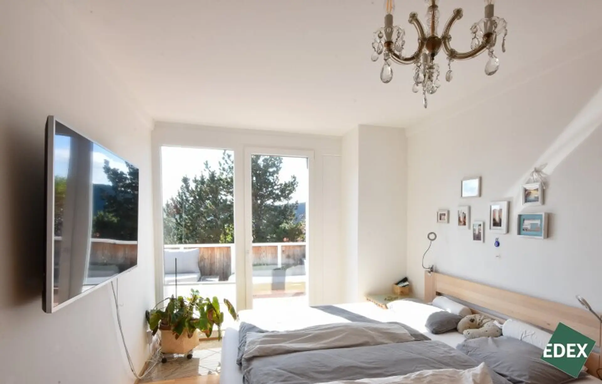 Drei helle Zimmer, zwei davon mit Zugang zu einer weiteren etwa 8,9 m² großen Terrasse