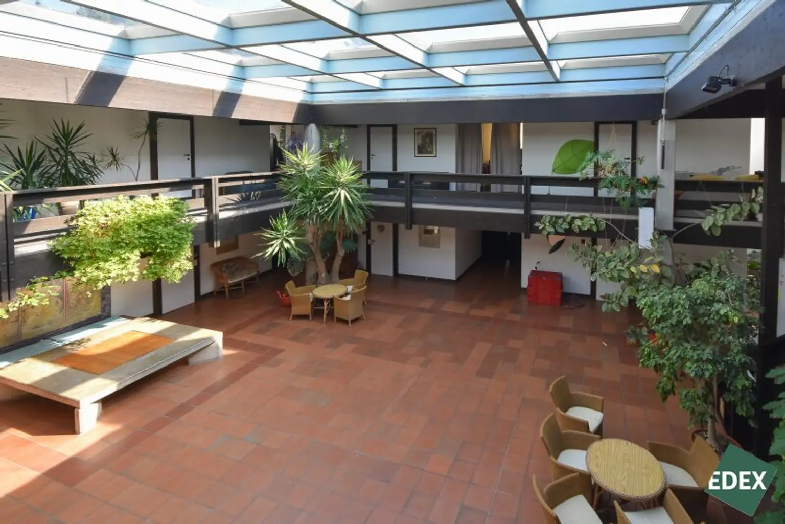 2 Atriumsplätze als Begegnungszone mit kleinem Fitnessbereich und Küchenbereich