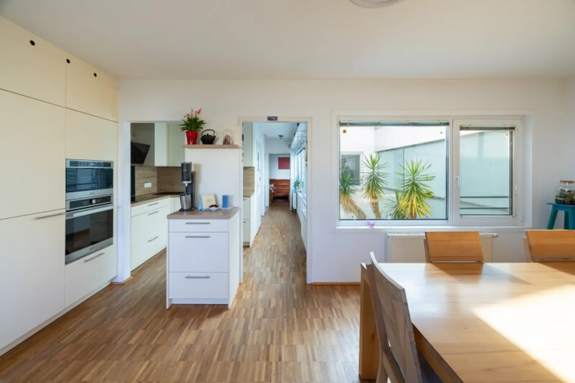 Zum Verkauf steht dieses außergewöhnliche Atriumreihenhaus mit rund 130 m² Wohnfläche und zwei Terrassen. Das Reihenhaus ist Teil einer exklusiven Wohnanlage mit 42 Einheiten, die 1999 vom renommierten Architekten Walter Stelzhammer konzipiert und von BUWOG errichtet wurde und sich in einer ruhigen Privatstraße befindet.