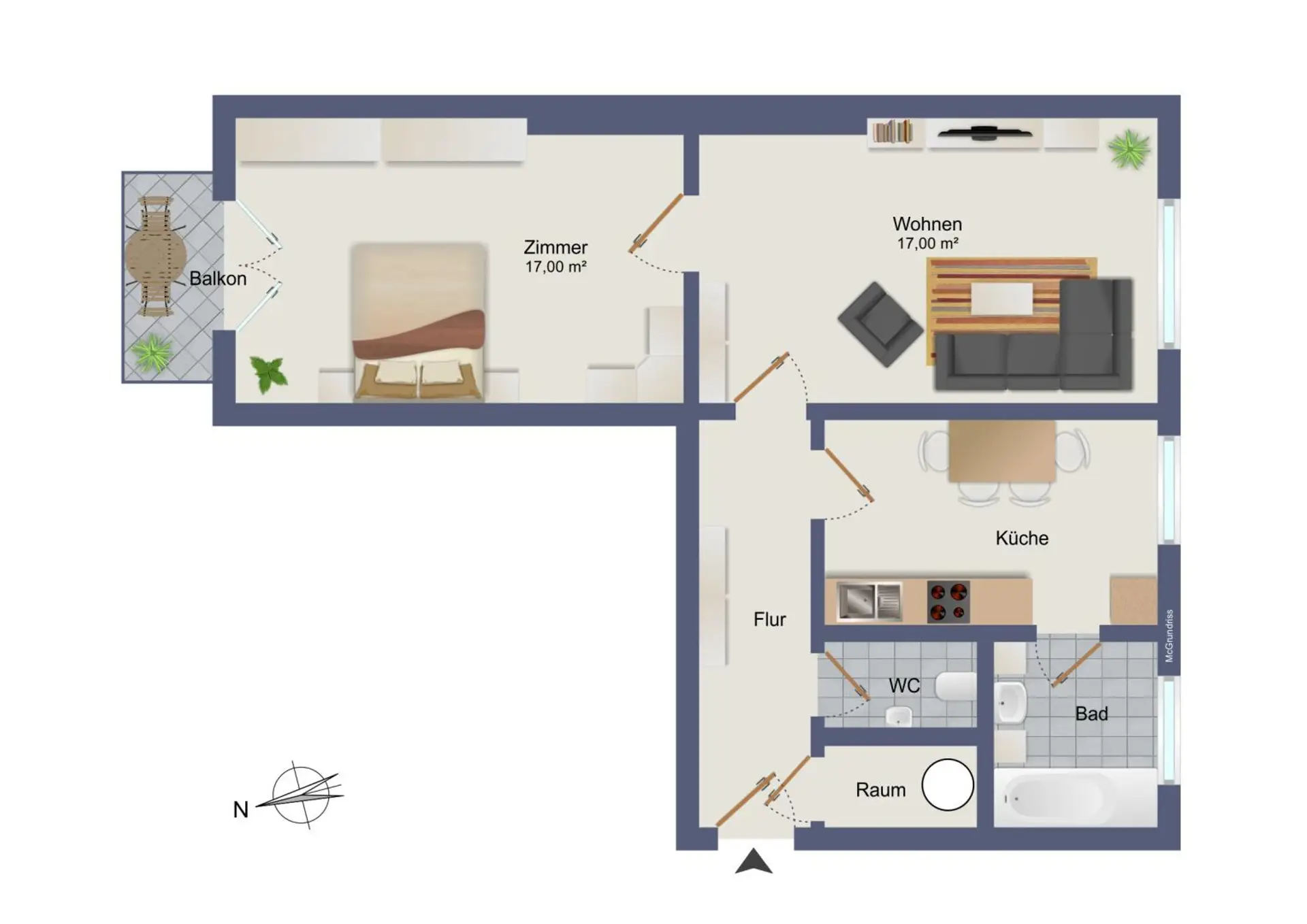 Die Wohnung gliedert sich wie folgt: